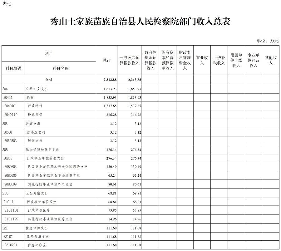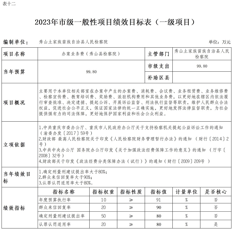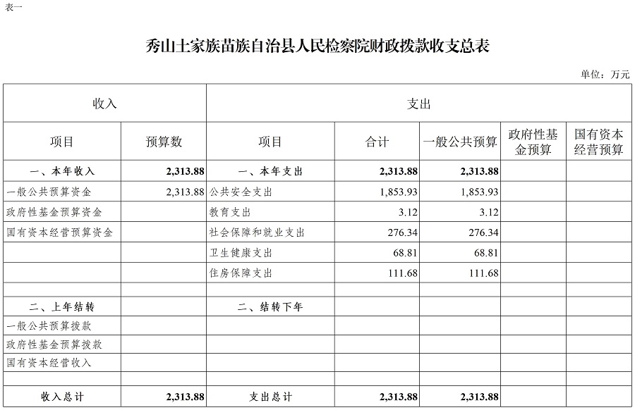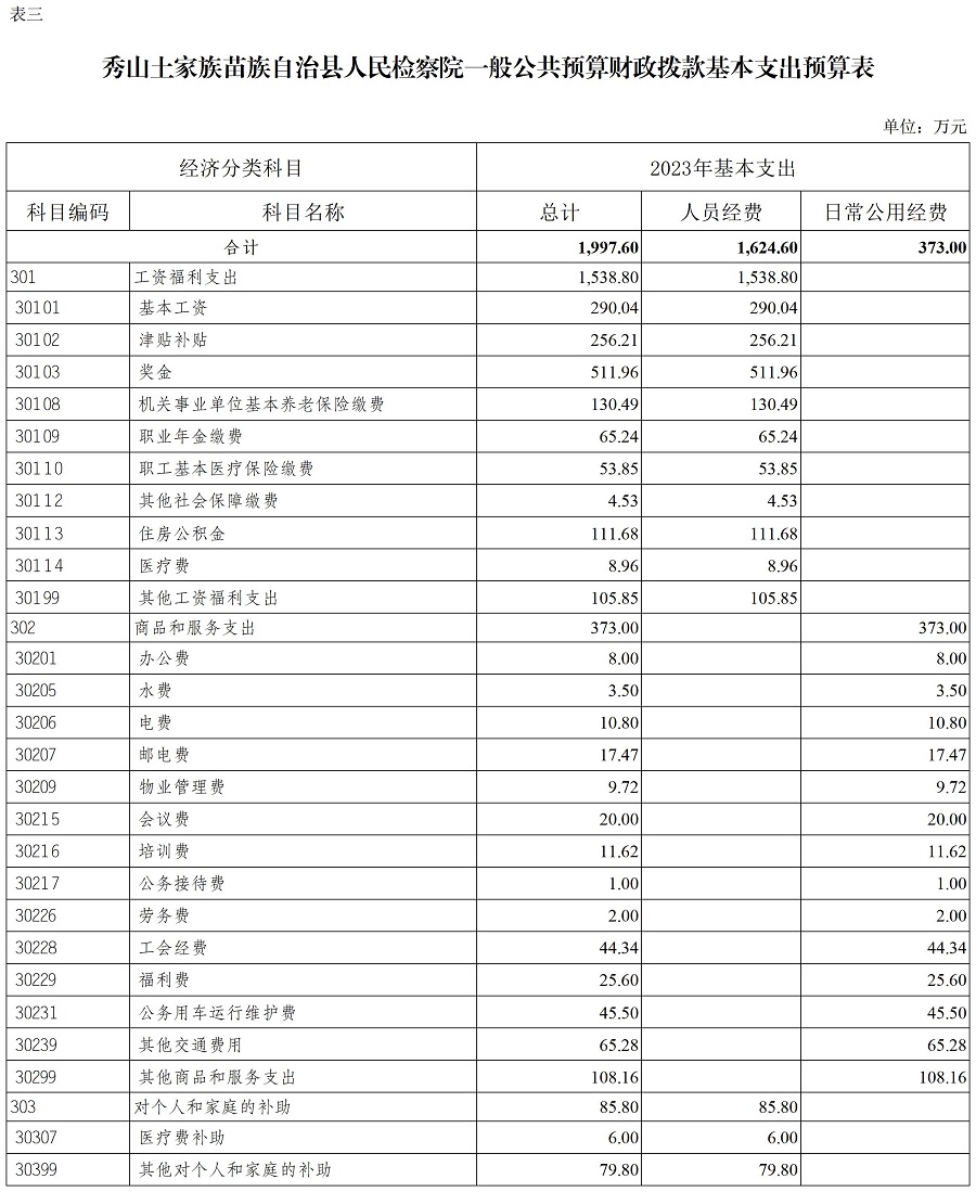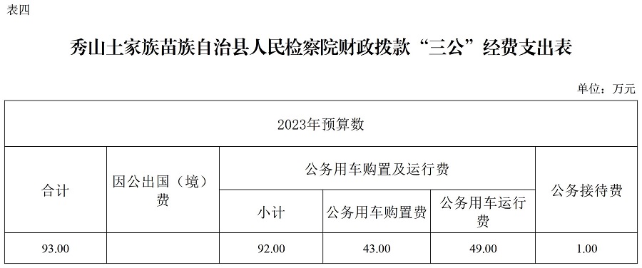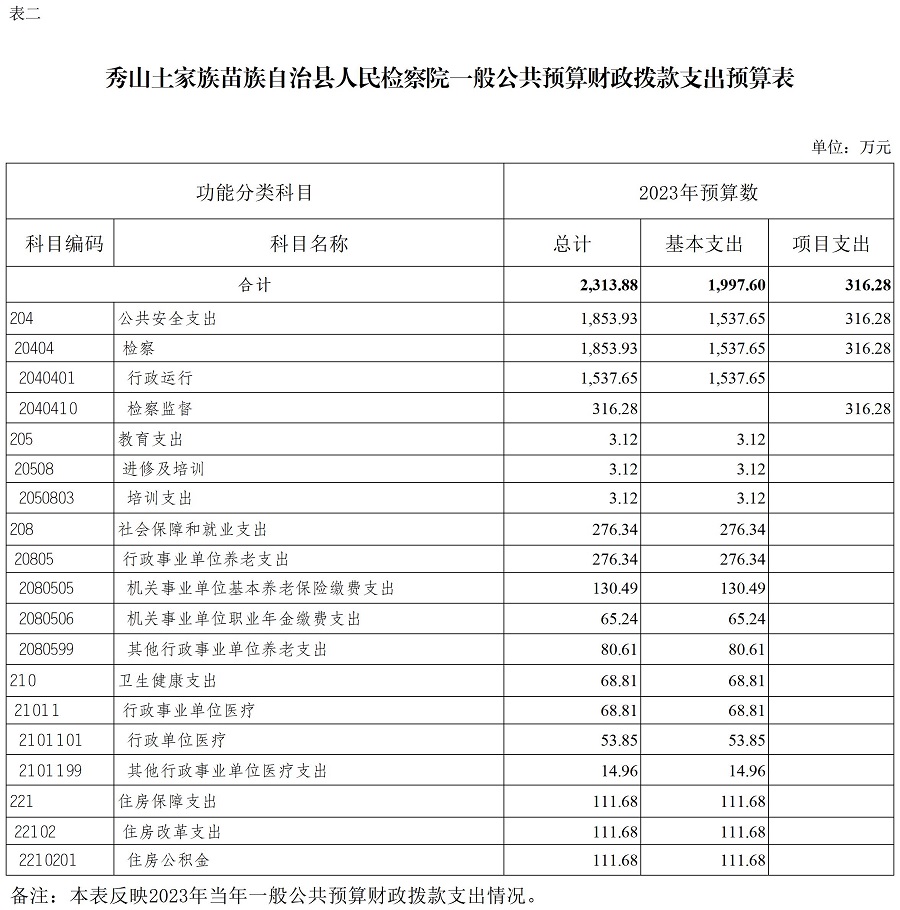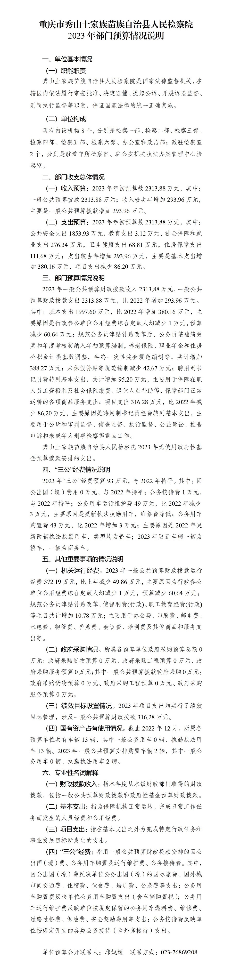 重庆市秀山土家族苗族自治县人民检察院2023年部门预算公开