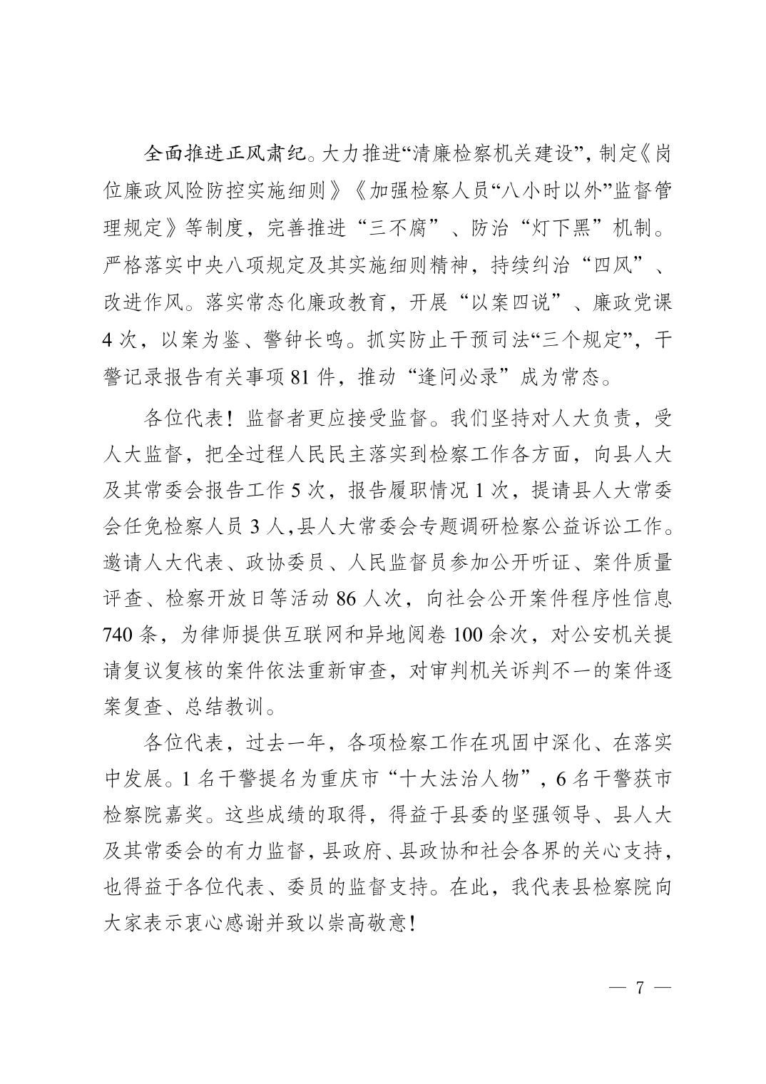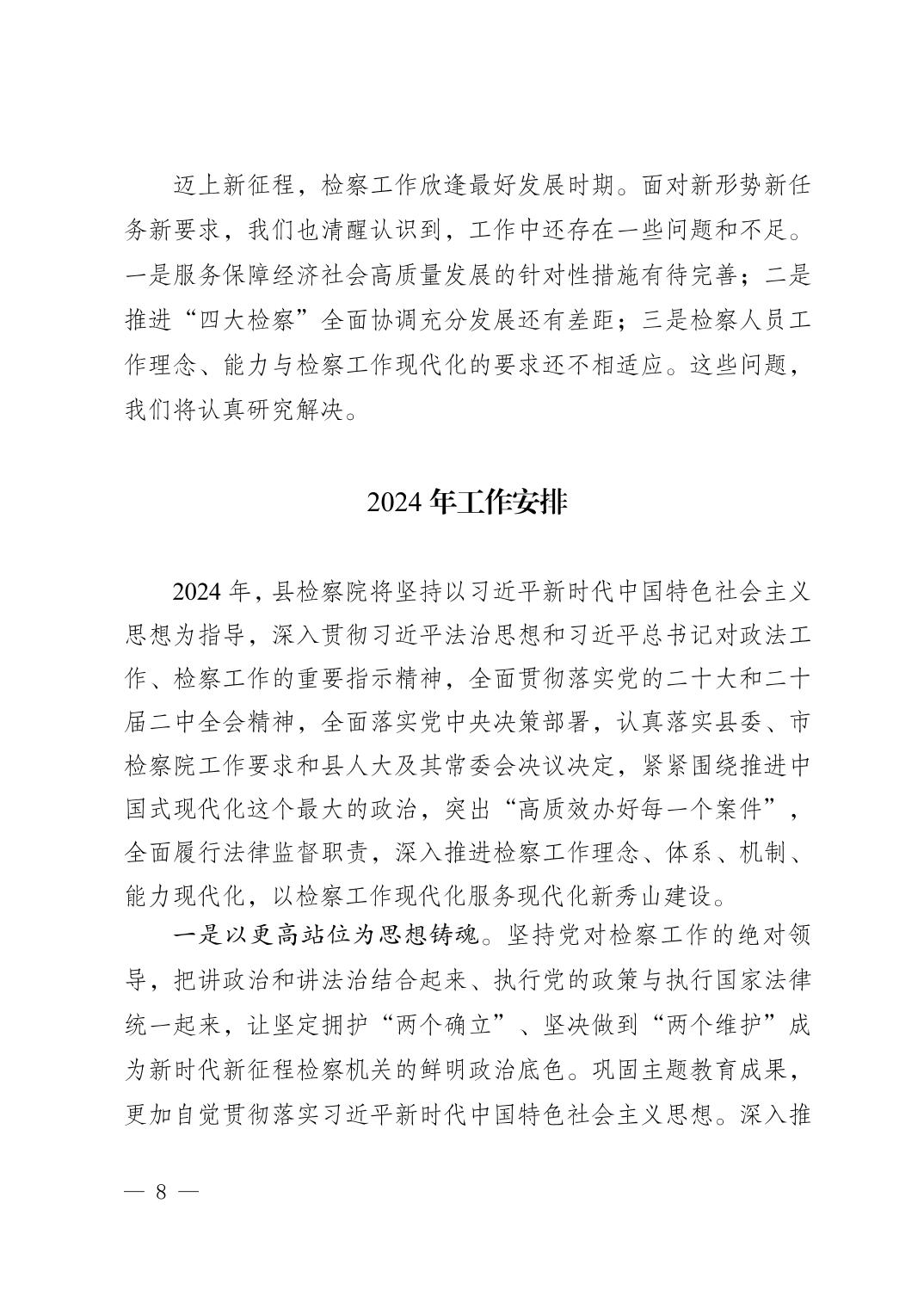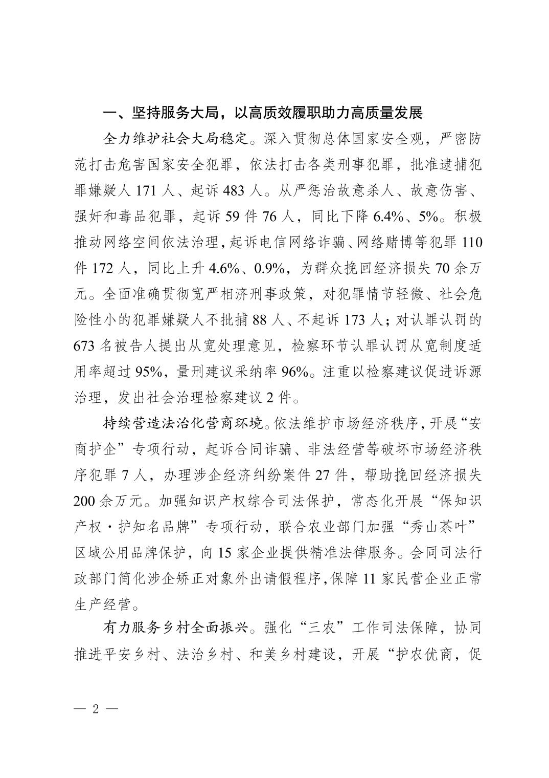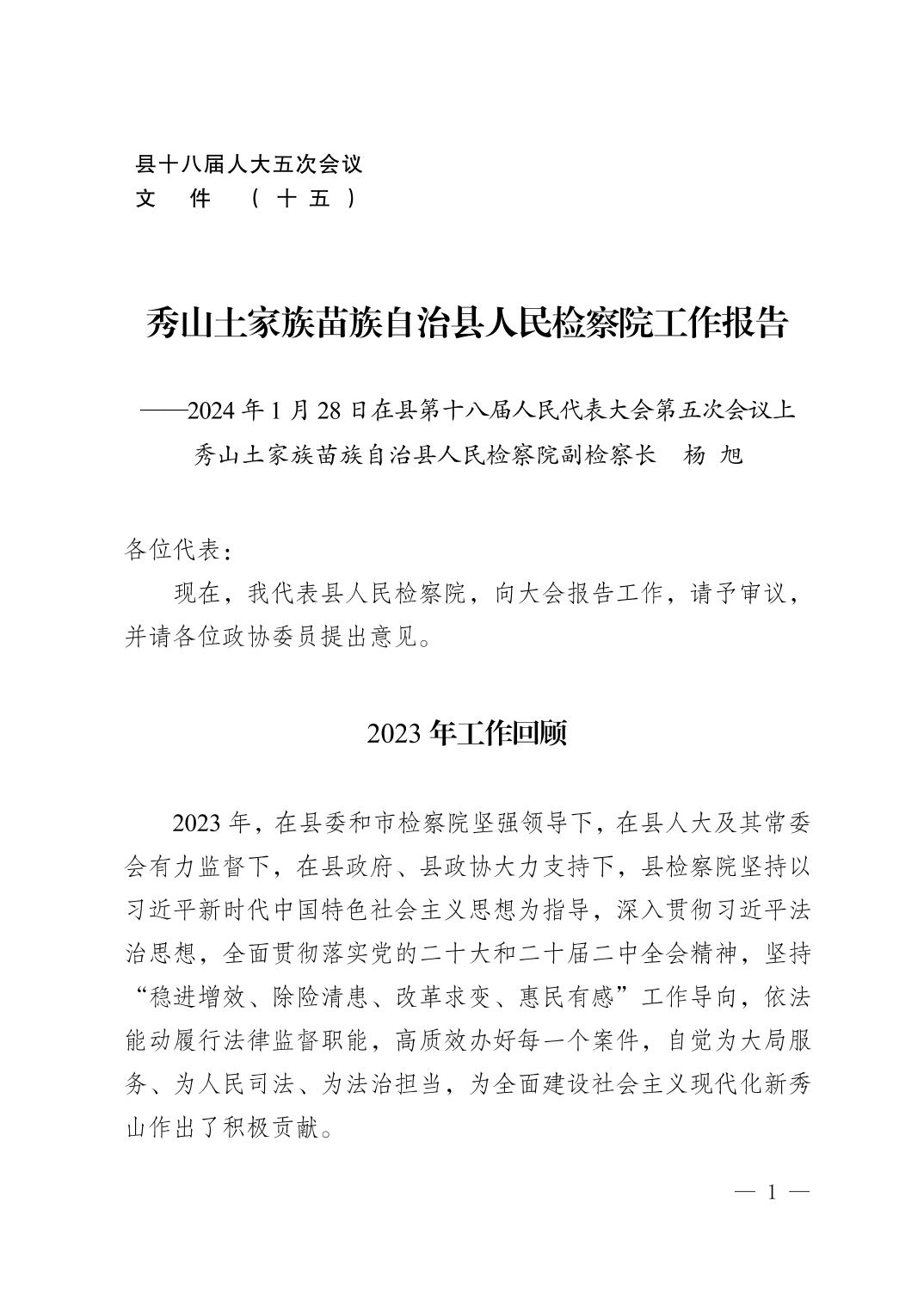 秀山土家族苗族自治县人民检察院工作报告(2024年1月28日)