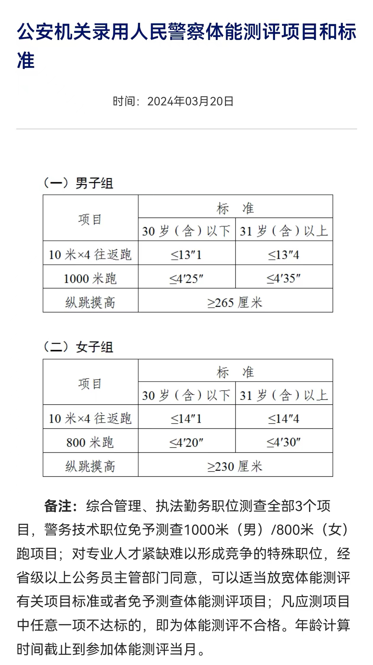 3.体能测评为达标性测评,考生凡应测项目中任意一项不达标的,即为体能测评不合格,不再参加后续项目的测评。
