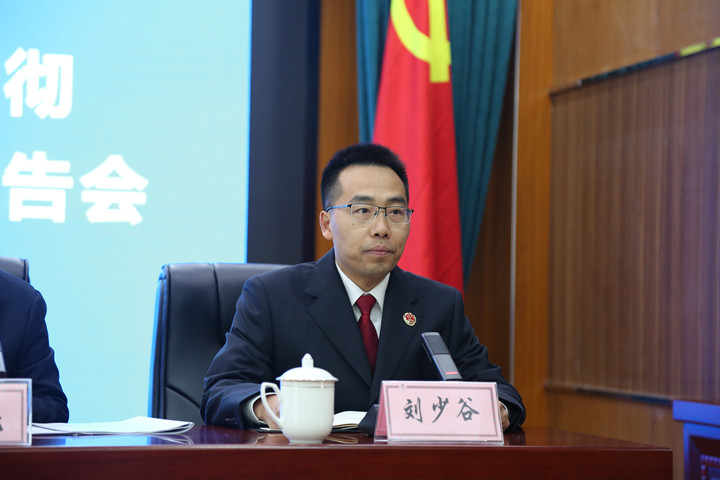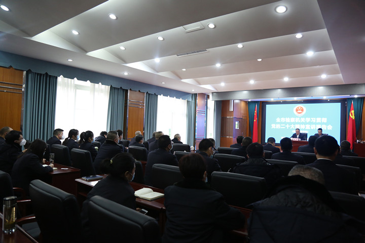 政治部综合室主任周亮一行受市院党组委托,到我院宣讲党的二十大精神。我院党组书记、检察长刘少谷主持会议,全体院党组成员、检委会专职委员及干警参会。