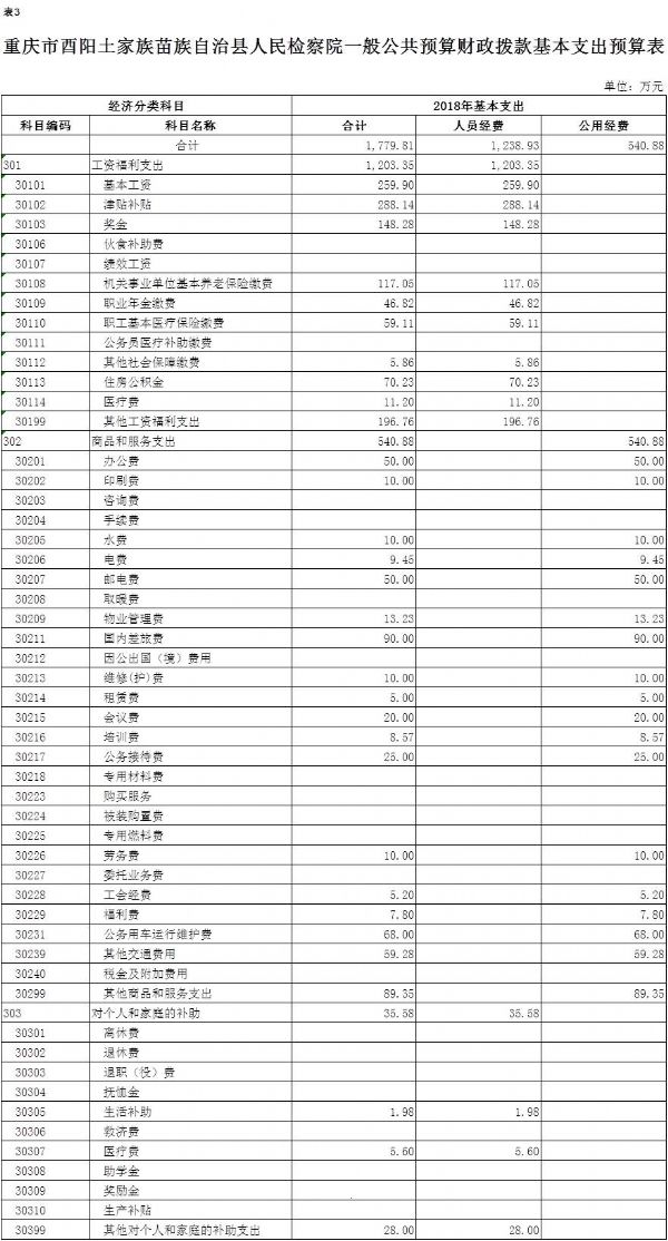 重庆市酉阳土家族苗族自治县人民检察院2018年部门预算情况说明