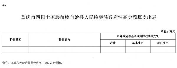 重庆市酉阳土家族苗族自治县人民检察院2018年没有使用政府性基金预算拨款安排的支出,与上年一致。
