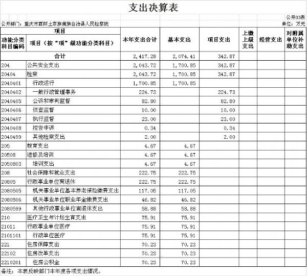 2.支出情况。本部门2018年度财政拨款支出2,403.95万元,较上年决算数增加112.11万元,增长4.89%。主要原因一是人员增加及政策性增资;二是本部门新增公益诉讼等职能,购置无人机等设备。较年初预算数增加213.74万元,增长9.76%。主要原因一是人员增加及政策性增资;二是年中追加政府目标奖及健康休养费。