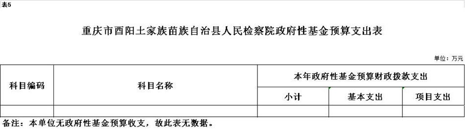 酉阳土家族苗族自治县人民检察院2020年未使用政府性基金预算拨款安排的支出,与上年一致。