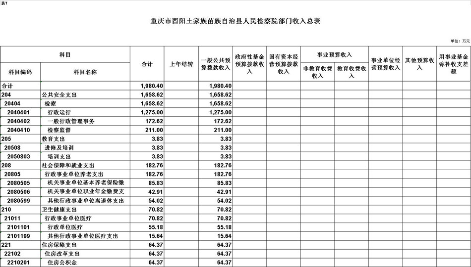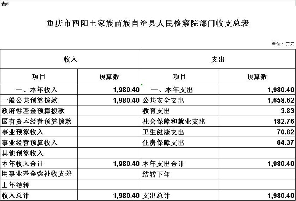 2020年一般公共预算财政拨款收入1980.4万元,一般公共预算财政拨款支出1980.4万元,比2019年减少186.03万元。其中:基本支出1596.78万元,比2019年减少218.23万元,主要原因是监察体制改革,转隶人员全部划转至监察委,人员减少,主要用于保障在职人员工资福利及社会保险缴费,退休人员补助等,保障部门正常运转的各项商品服务支出;项目支出383.62万元,比2019年增加32.2万元,主要原因是提高了年初预算到位率,主要用于公诉和审判监督、侦查监督、执行监督、控告申诉、民行监督、公益诉讼等重点工作。