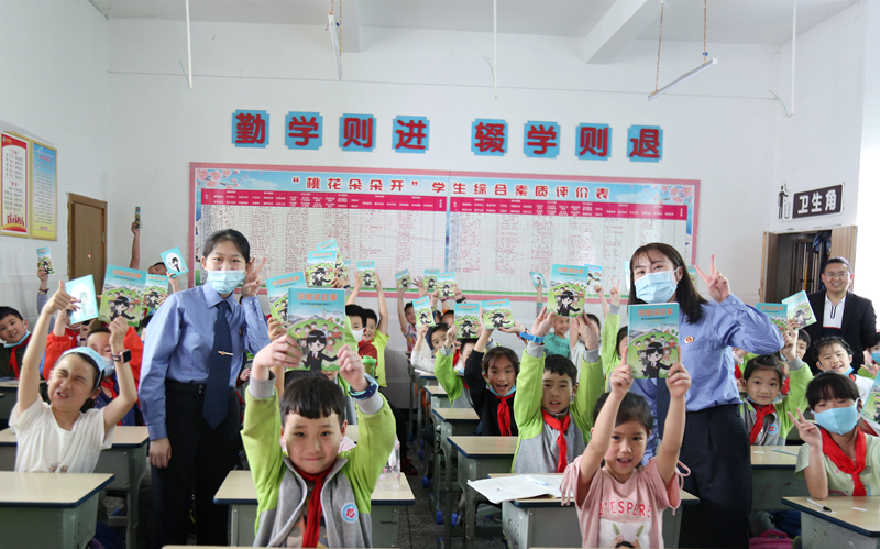 为进一步提高未成年人自我保护意识,六一前夕,廖万超检察长及一部未成年检察官走进桃花源小学,采取“线上+线下”相结合的方式,通过视频、发放宣传资料、莎姐法治书籍、现场咨询、线上“微课堂”等方式,为未成年小学生开展了预防性侵、校园暴力等普法宣传。