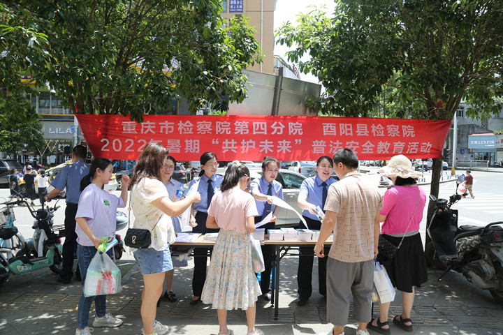 为深化“共护未来”依法严厉惩治性侵害未成年人犯罪专项行动,2022年7月6日,我院联合四分院走进酉阳部分校园、社区及培训机构,广泛开展普法宣传。