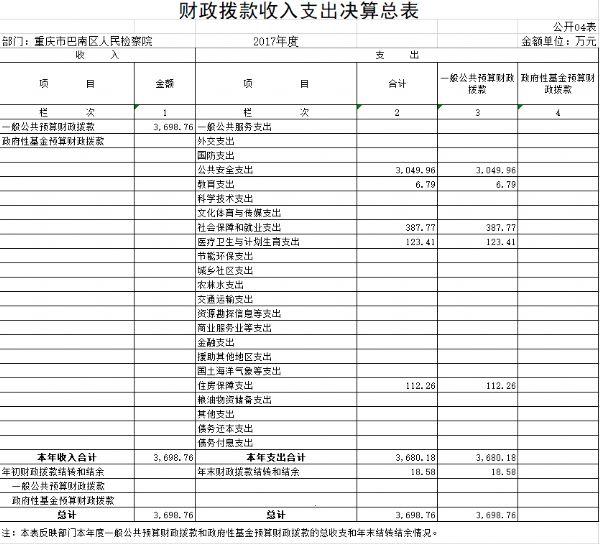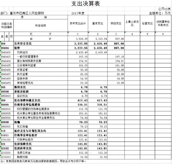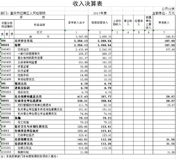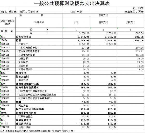 重庆市巴南区人民检察院2017年部门决算情况说明