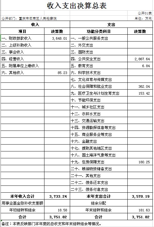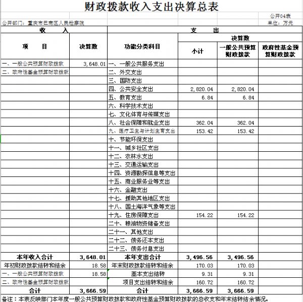 重庆市巴南区人民检察院2018年度部门决算情况说明