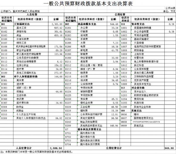 (五)基本支出:指为保障机构正常运转、完成日常工作任务而发生的人员经费和公用经费。其中:人员经费指政府收支分类经济科目中的“工资福利支出”和“对个人和家庭的补助”;公用经费指政府收支分类经济科目中除“工资福利支出”和“对个人和家庭的补助”外的其他支出。