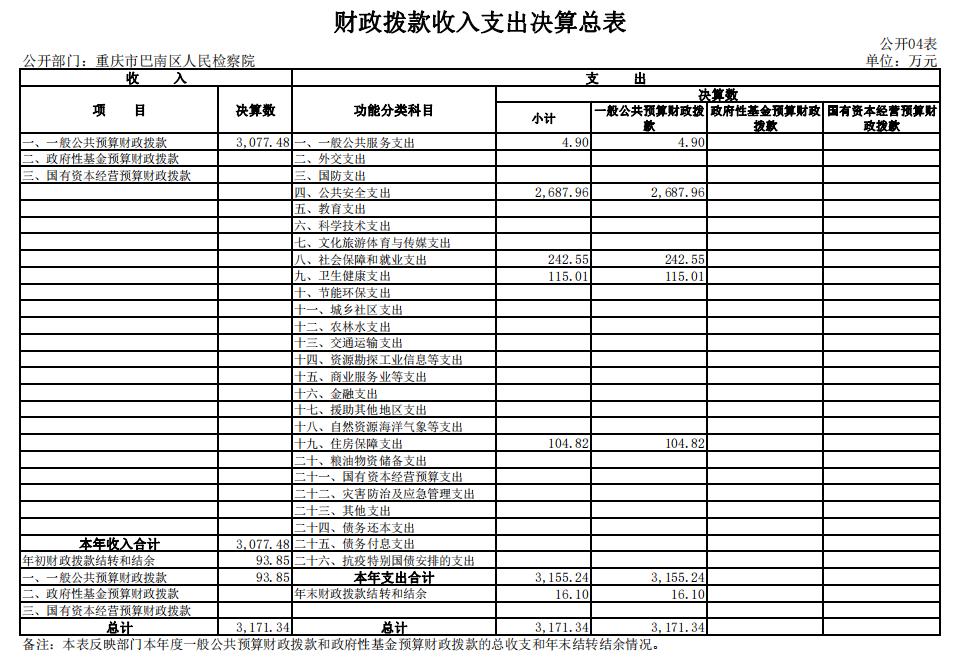 2020 年度财政拨款收、支总计3,171.34万元。与2019年相比,财政拨款收、支总计各减少831.43万元,下降20.8%。主要原因是一是职侦转隶人员经费划转减少;二是2019年底预发政府目标考核奖励,2020年没有预发政府目标考核奖励;三是2019年办公楼搬迁增加一次性搬家运行经费。
