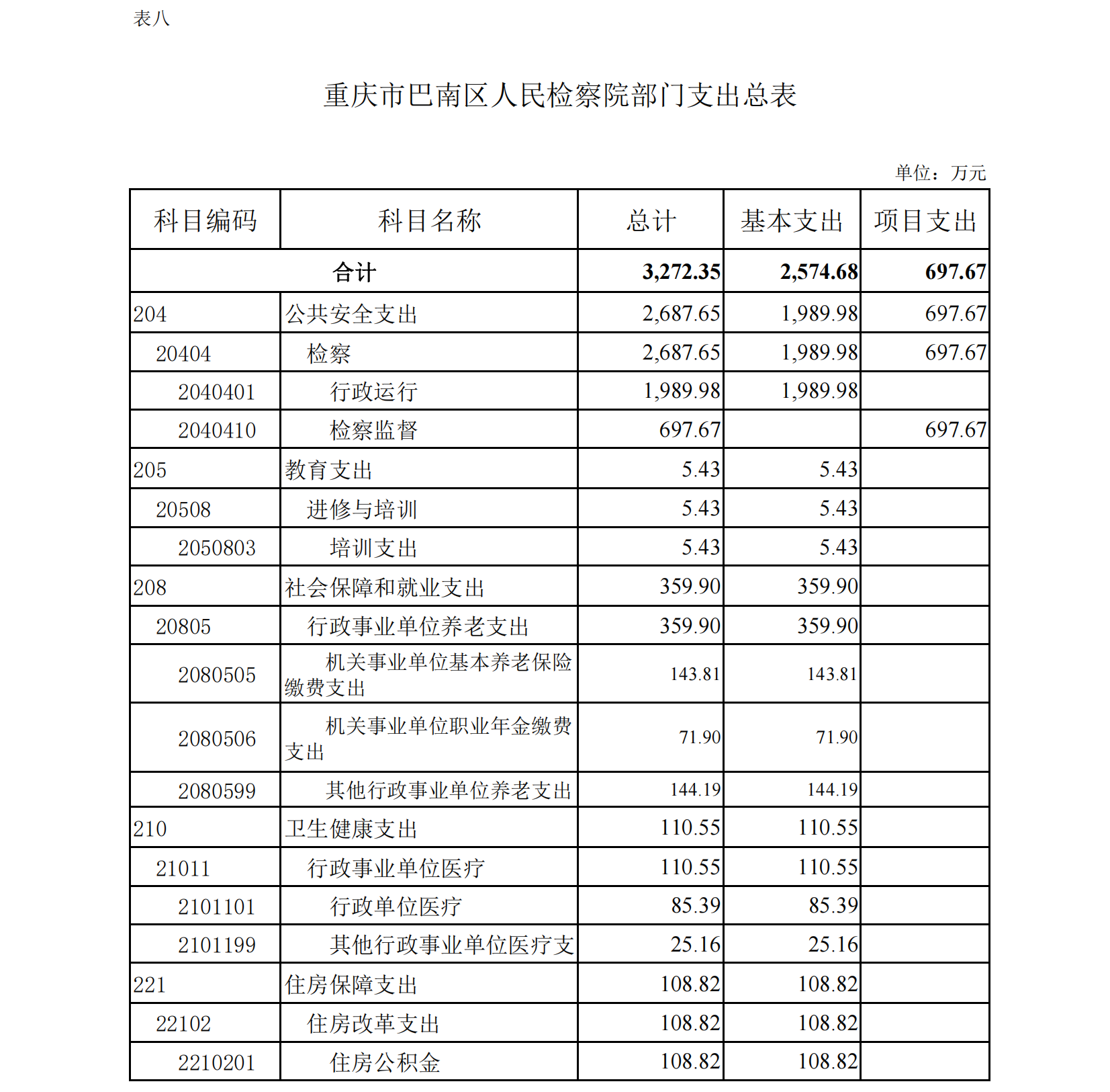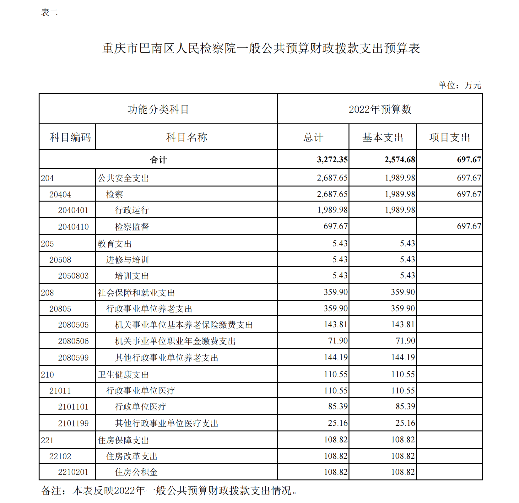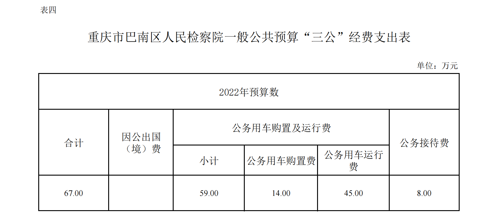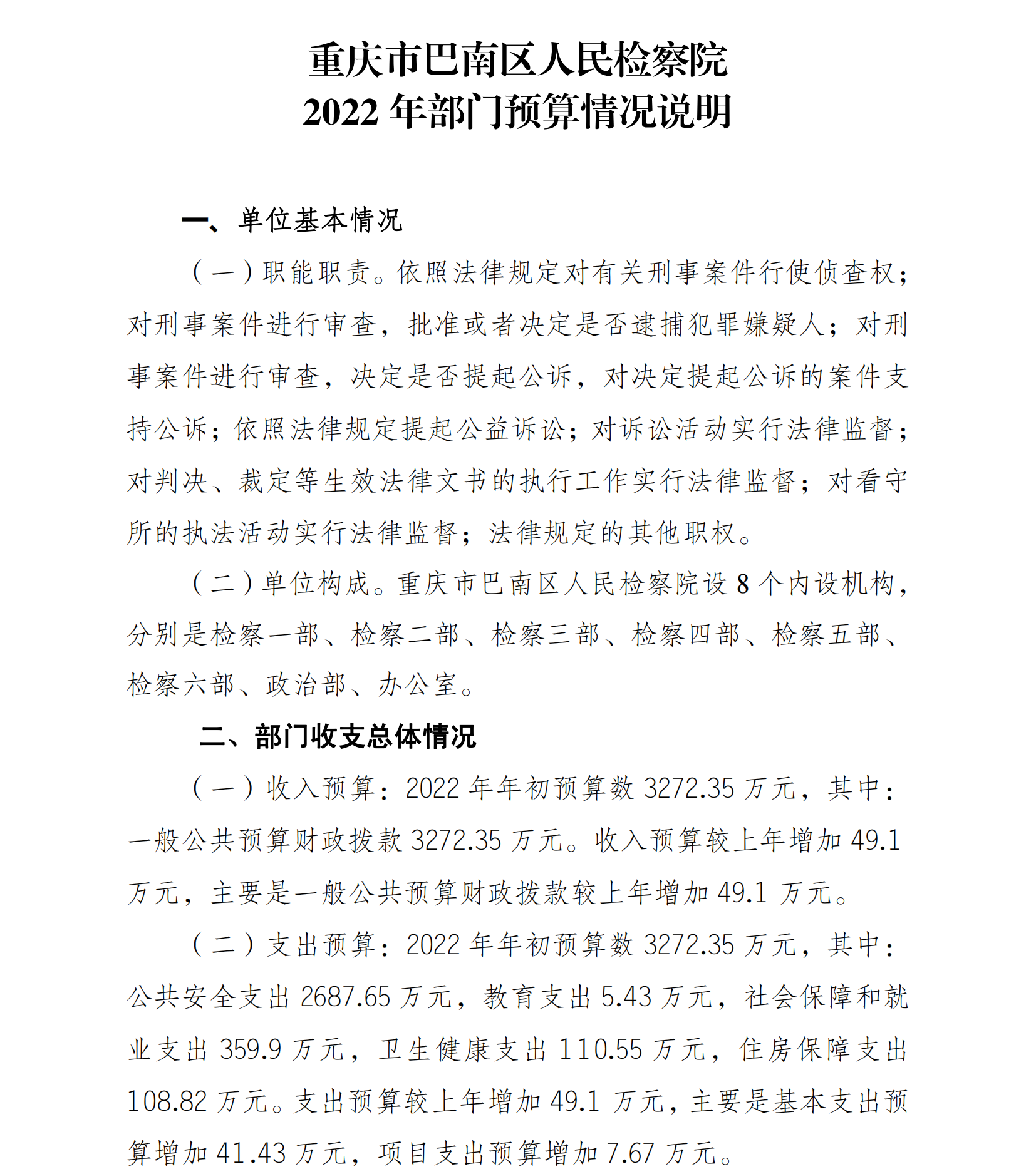 重庆市巴南区人民检察院2022年部门预算公开