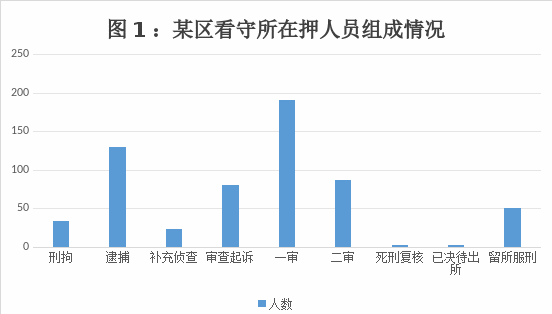 根据图1可知,截止2024年2月27日,B区看守所在押人员共计600人,其中留所服刑罪犯仅50人,占比约8.3%,其余均为处于诉讼期间的在押人员,即未决犯。未决犯在关押期间存在取保候审等刑事强制措施变更带来的不稳定性,加之后续投劳等流转,流动性较强。在看守所留所服刑的罪犯为余刑在三个月以下的有期徒刑罪犯及被判处拘役的罪犯,在所服刑期限较短。笔者同时对B区看守所2023年的收押及出所人员数据进行统计分析发现,2023年全年,B区看守所共收押罪犯2241人,月均收押187人左右;共出所2090人,月均出所人员为174人左右。通过数据可知,看守所的羁押人员流动性极强,且流动期限较短,每个月均有入所、出所人员的情况变动,因此看守所在羁押人员方面与监狱相较存在特殊性,监狱主要关押较长服刑期限的罪犯,羁押期限长、人员稳定性高、罪犯的活动空间相对宽泛,看守所的活动范围有限,场所封闭性强,加上人员的流动性高,超期羁押情形的纠正、刑讯逼供线索的处理、职务犯罪侦查案件线索的发现都要注重实效性。