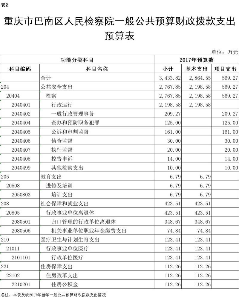 重庆市巴南区人民检察院2017年部门预算情况说明