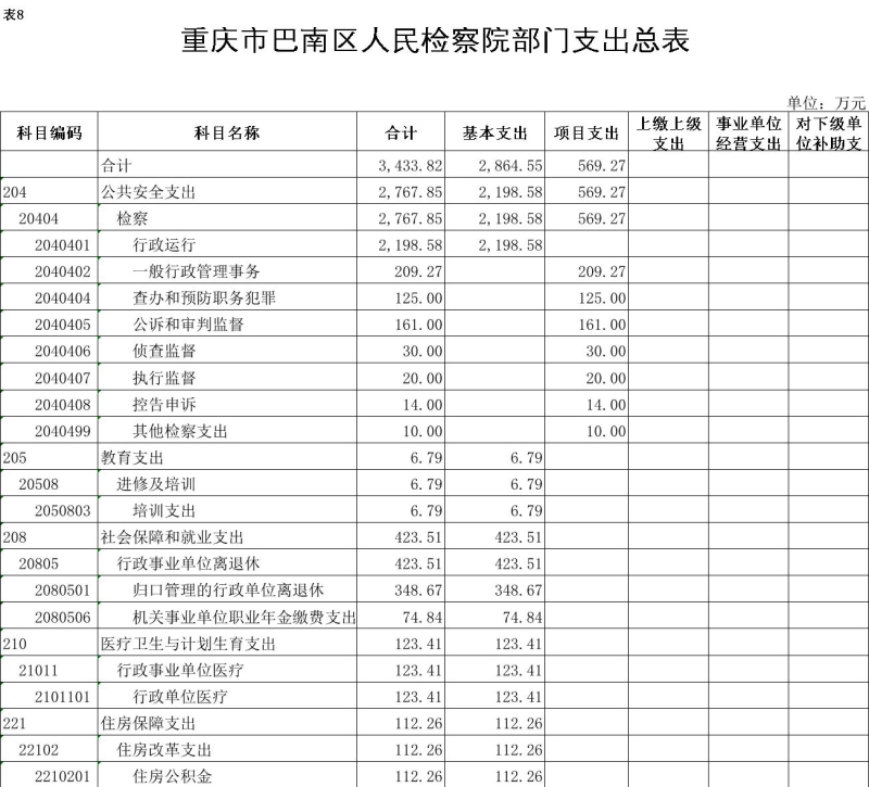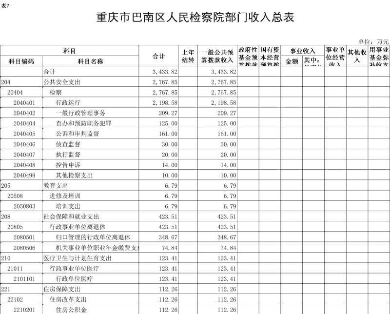 附:重庆市巴南区人民检察院预算公开相关表册(表1至表8)