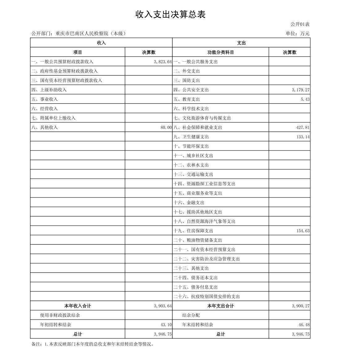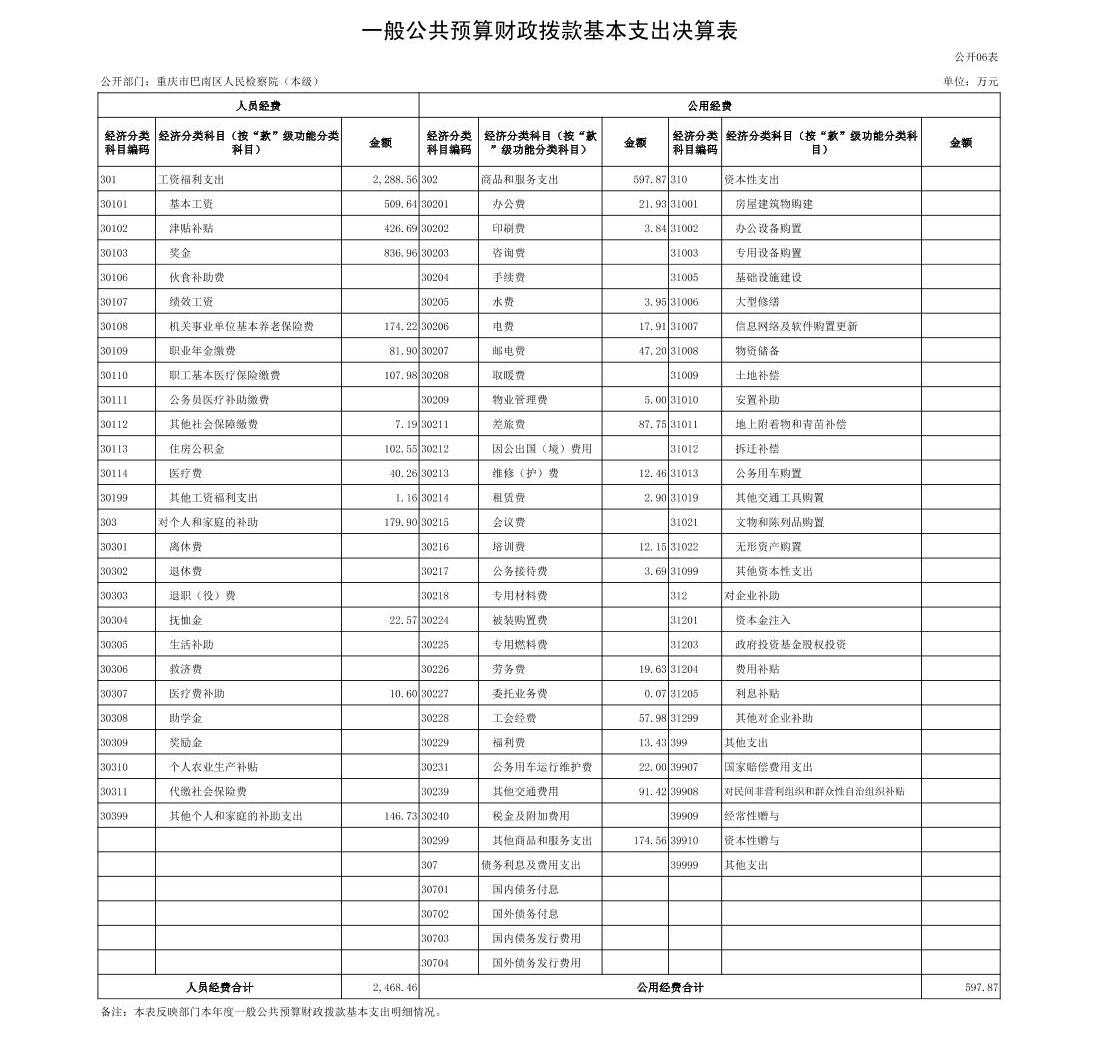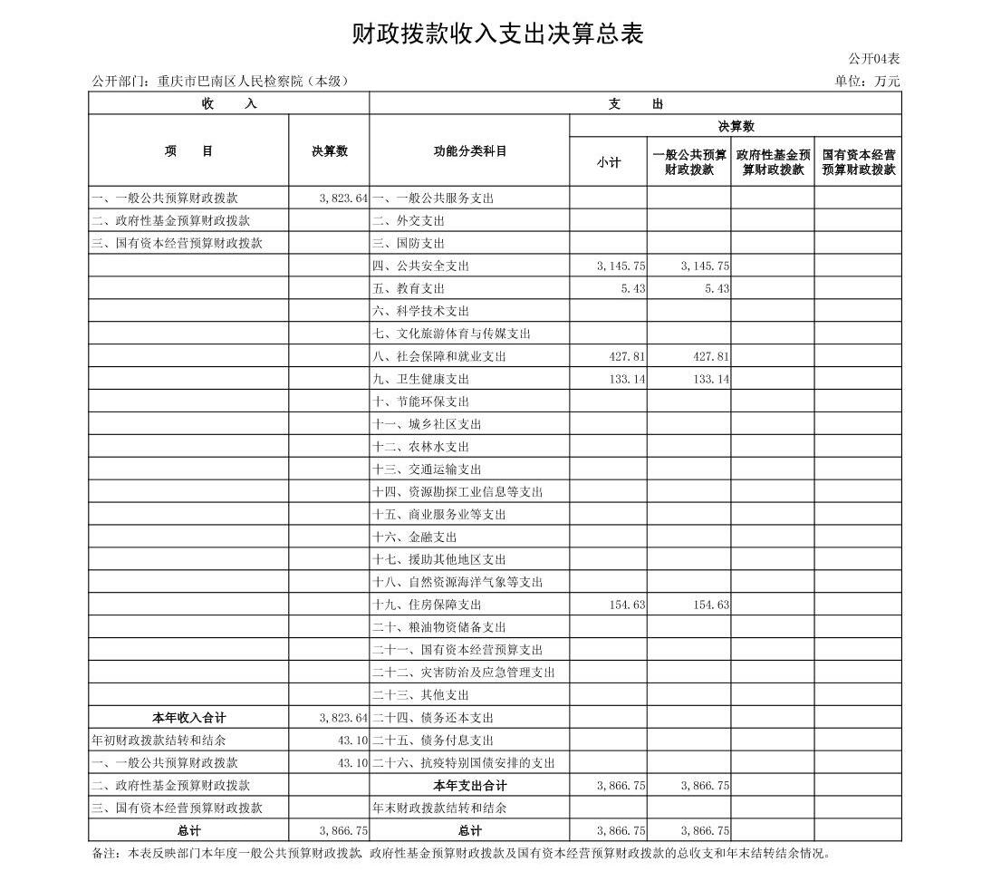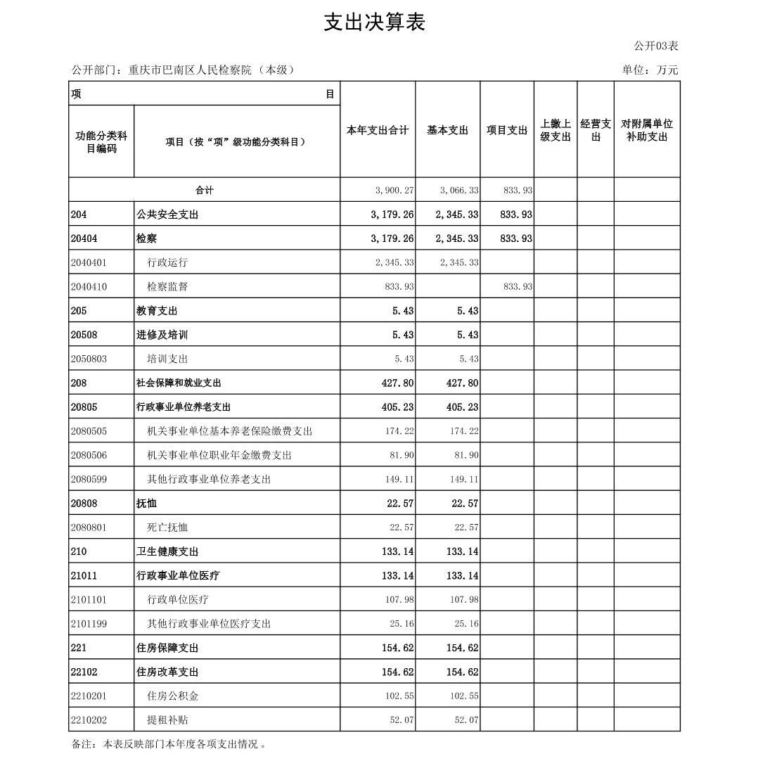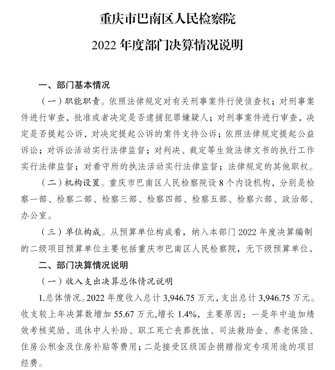 重庆市巴南区人民检察院2022年部门决算公开