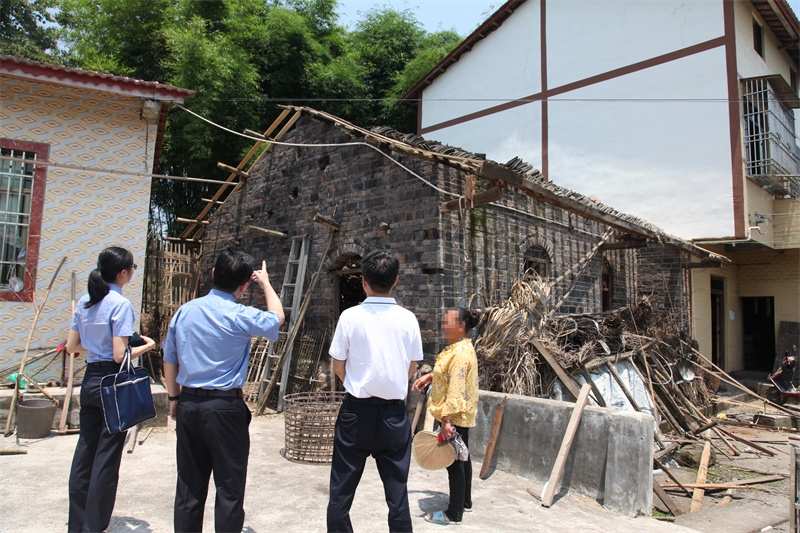 7月6日,顶着炎炎烈日,大渡口区检察院前往武胜县周某某居住地,开展接访、实地调查、办案取证等司法救助工作。
