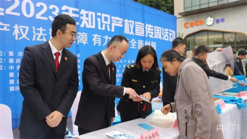4月24日,荣昌区检察院联合区知识产权局、区法院等单位,在东邦城市广场开展“4·26”世界知识产权日宣传活动。