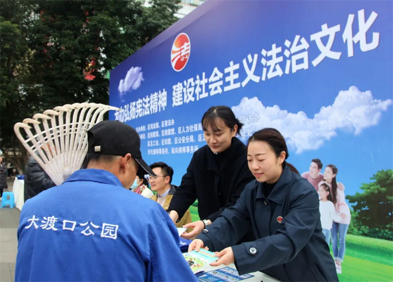 12月4日,大渡口区检察院参加了该区在大渡口公园举行的以“大力弘扬宪法精神,建设社会主义法治文化”为主题的“宪法宣传周”集中宣传活动。活动现场,检察干警一边向来往群众发放宪法宣传资料,一边提供法律咨询。