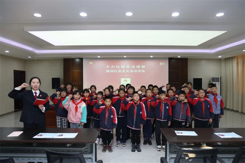 此外,该院多名法治副校长、法治辅导员还到萱花中学参加了“弘扬宪法精神 共建法治校园”主题升旗仪式,在国旗下宣讲宪法精神;邀请跃龙小学学生到法治教育基地参加实践课程,带领同学们进行庄严的宪法宣誓。