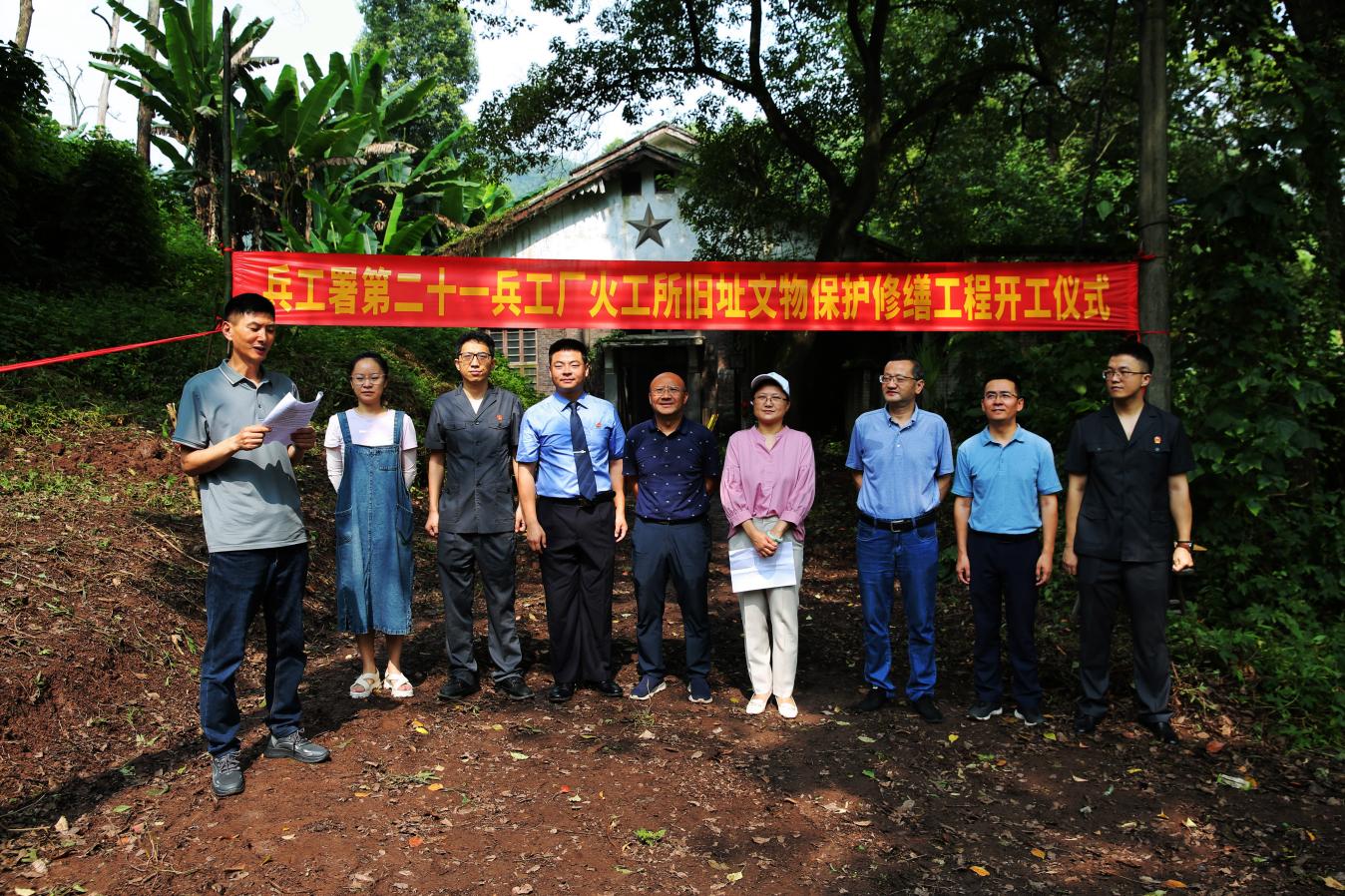 2024年7月4日,兵工署第二十一兵工厂火工所旧址的保护修缮工程开工仪式在承载着厚重历史记忆的车间外隆重举行,由大渡口区文化旅游委承办,大渡口区检察院、大渡口区法院、中国铁路成都局集团公司重庆房建公寓段、瑞鑫建设投资有限公司、跳磴镇政府等单位的代表齐聚一堂,共同见证了这一历史性的时刻。