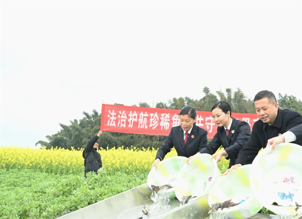 惩戒易,改观难。为更好实现法律教育意义,五分院与徐某等11人达成调解协议,被告以购买生态法治宣传及警示短信投放于自然保护区、增殖流放珍稀鱼类以及参与巡河、现身说法志愿活动等劳务代偿的方式履行义务,实现从“破坏者”到“保护者”的转变。