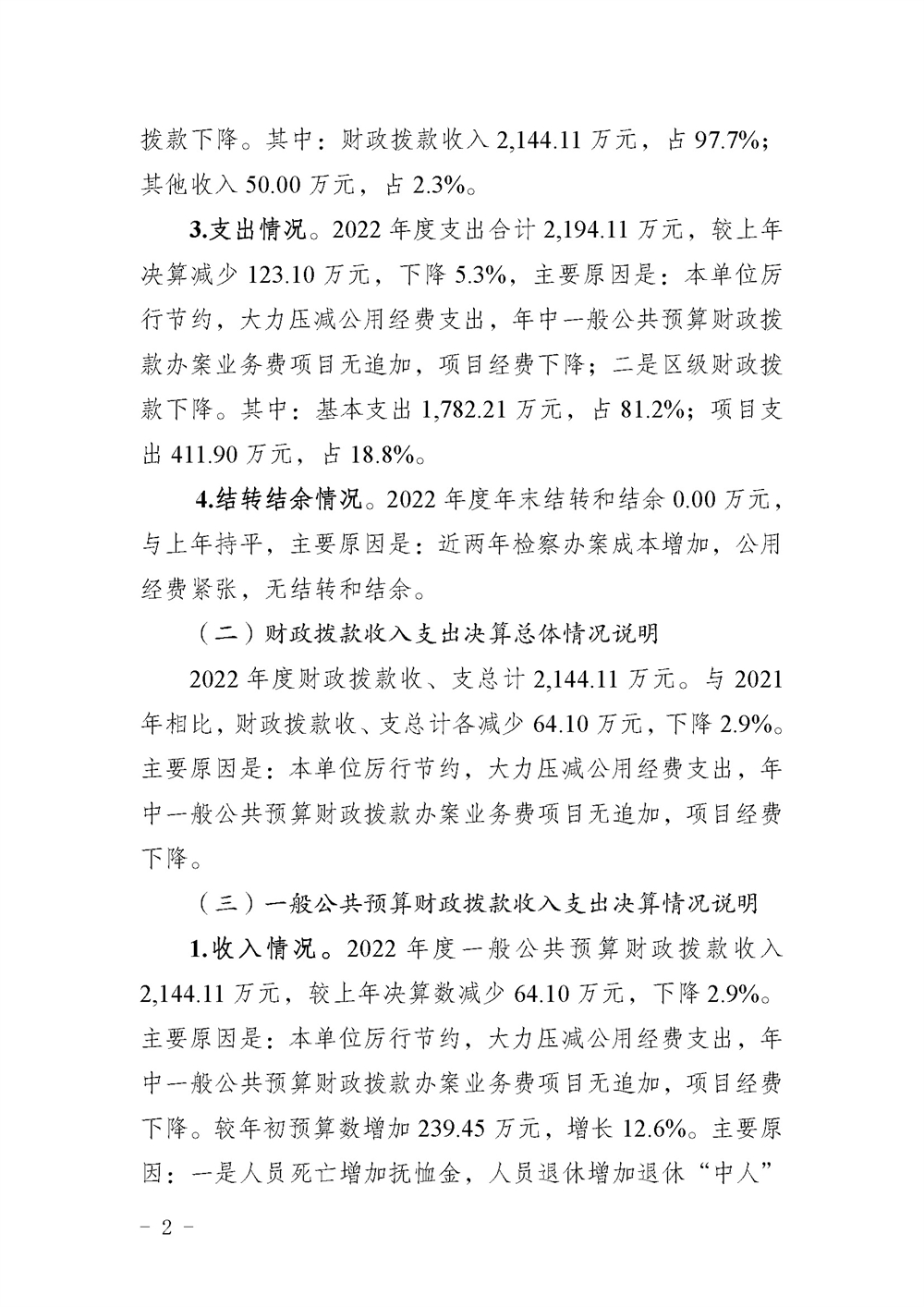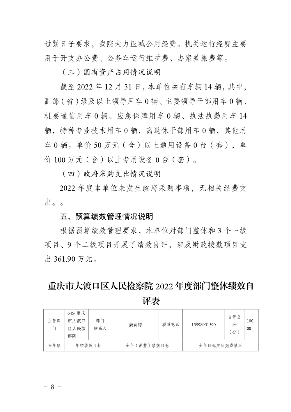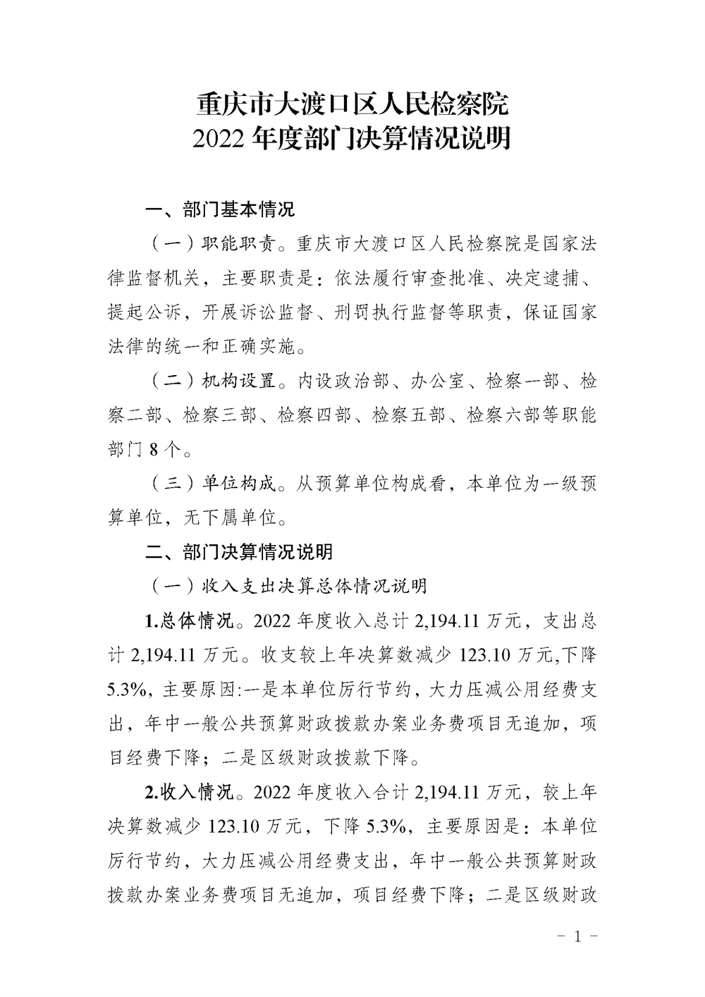 重庆市大渡口区人民检察院2022年度部门决算情况说明