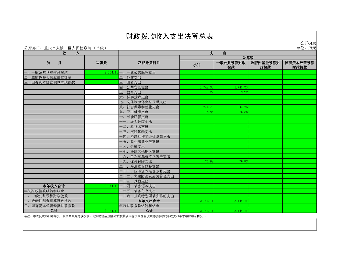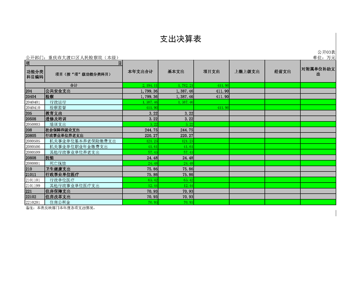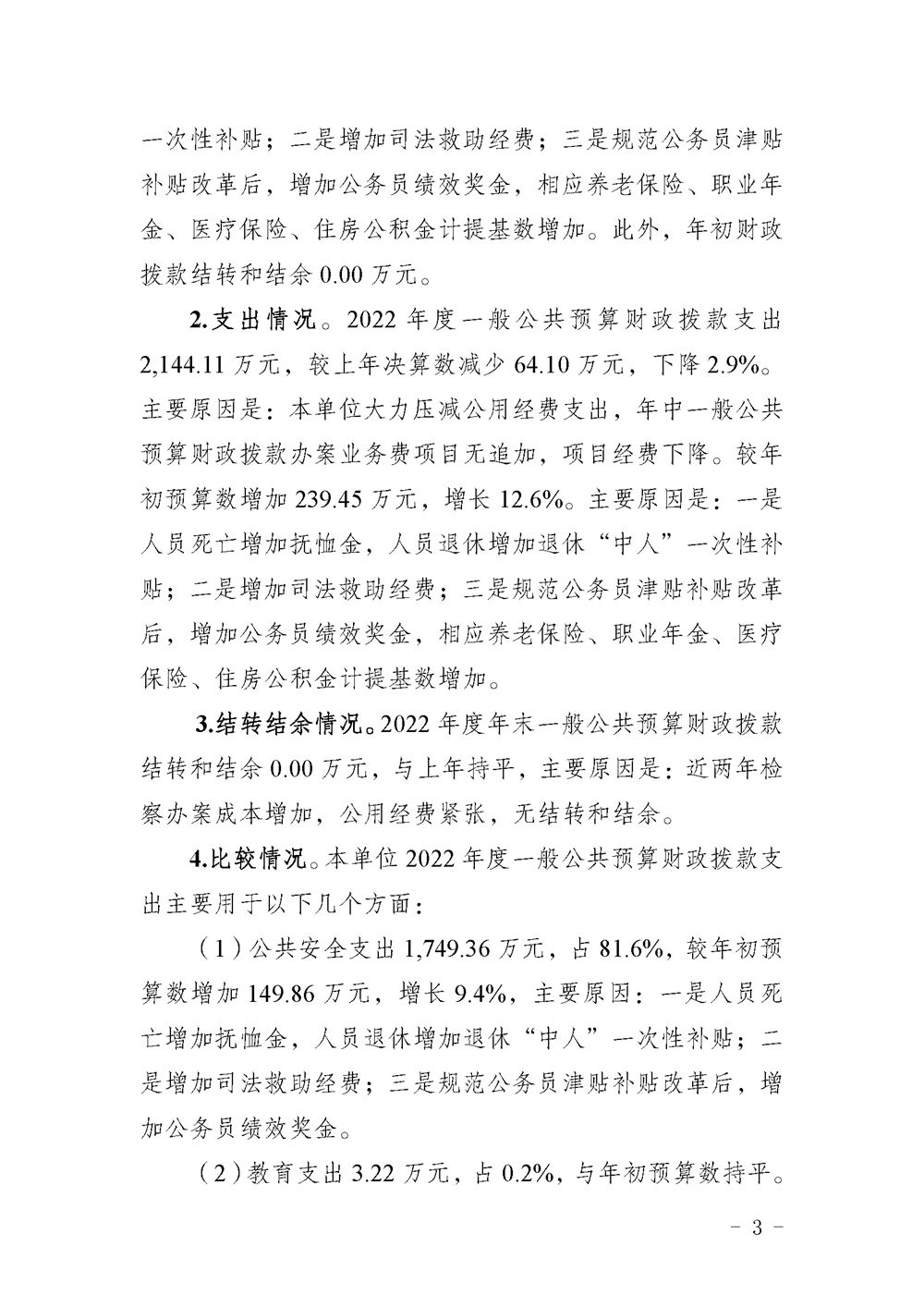 重庆市大渡口区人民检察院2022年度部门决算情况说明