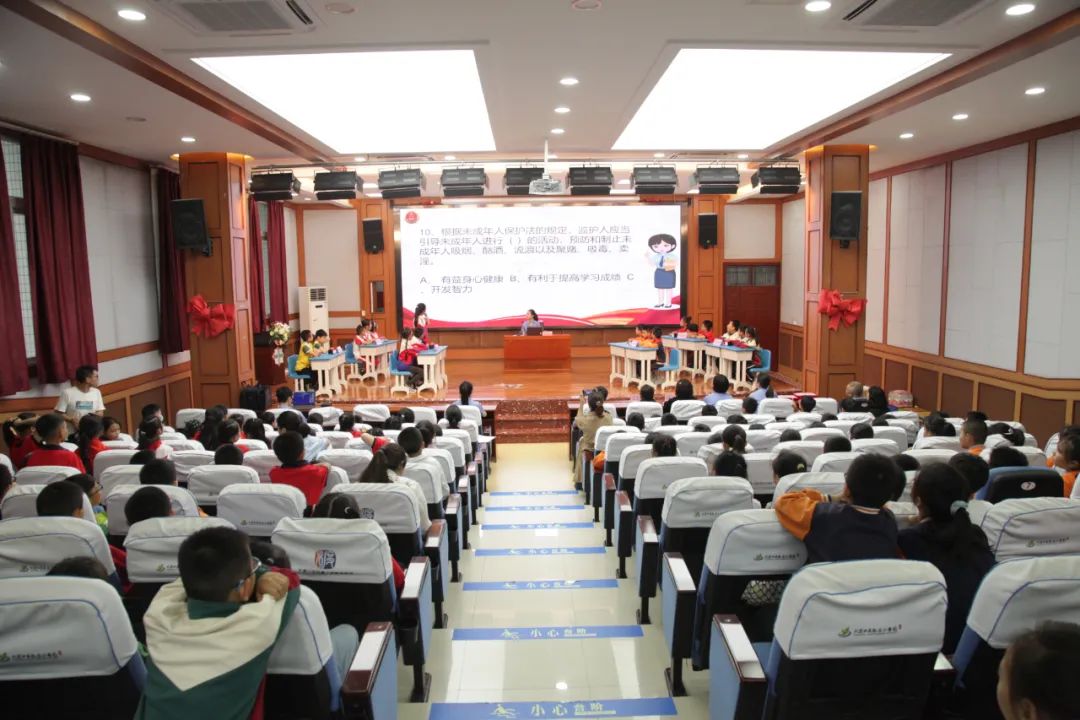 今年“六一”儿童节,是新修订的《中华人民共和国未成年人保护法》及《中华人民共和国预防未成年人犯罪法》正式施行一周年,为进一步做好未成年人司法保护相关普法宣传工作,5月27日,大渡口区检察院“莎姐”检察官走进钰鑫小学,开展了一场题为“携手落实‘两法’ 共护祖国未来”的青少年法治知识竞赛,6支参赛队伍18名选手及部分学生代表参加了此次活动。