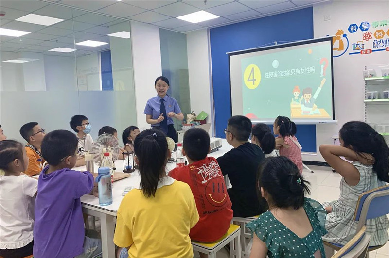 “同学们,你们知道在暑假里要注意些什么吗?下面让我给大家讲一讲……”课堂上,“莎姐”检察官结合自制的《法治西游行》动画片,生动形象地向同学们讲解了未成年人如何防性侵、防拐骗以及毒品犯罪等内容。