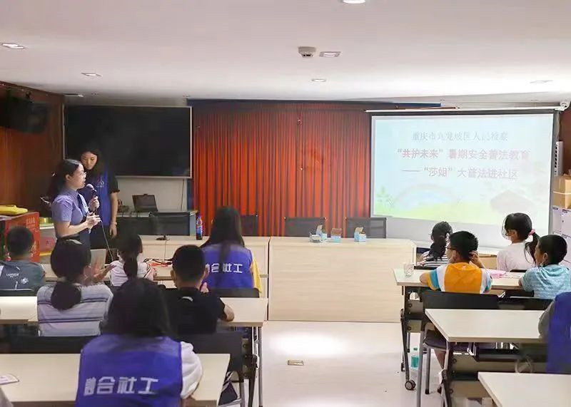 8月18日,巴南区检察院“莎姐”检察官来到辖区莲花街道西园社区微型青少年宫,开展了一场暑期“共护未来”普法安全教育活动。