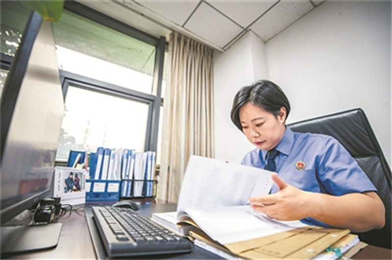 9月20日,在重庆市大渡口区人民检察院,梅玫在办公室内查阅最近侦办未成年案件的卷宗。新华社发