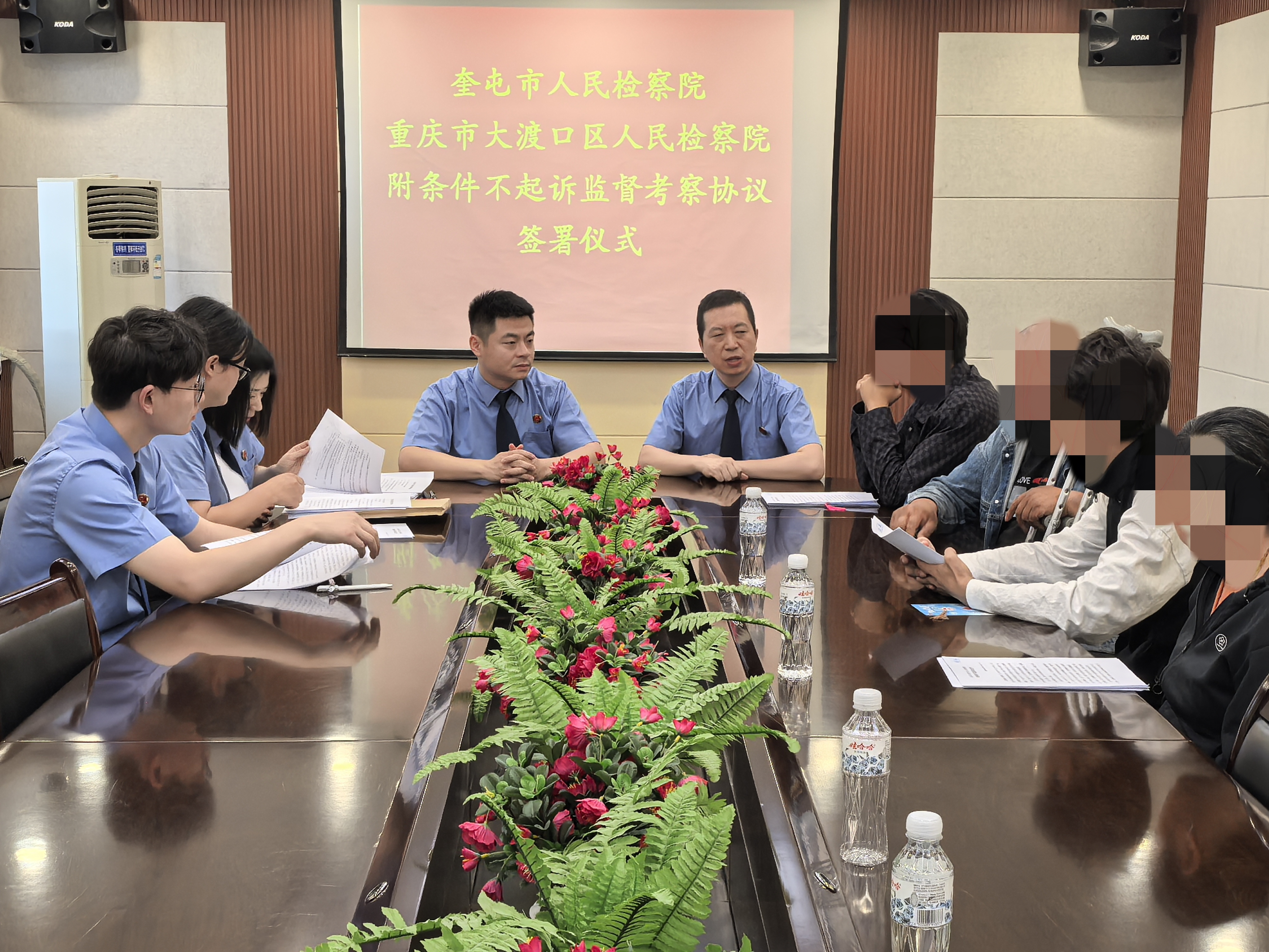 签署异地《附条件不起诉监督考察协议》,由奎屯院协助开展为期七个月的监督考察。此外,为解决监护缺失的问题,大渡口区检察院还向两名少年的监护人发出《督促监护令》,并定制了个性化《家庭教育指导方案》,将“检察+社工+家庭教育指导师”全覆盖的办案模式,融入奎屯市家庭教育指导站,与奎屯188体育