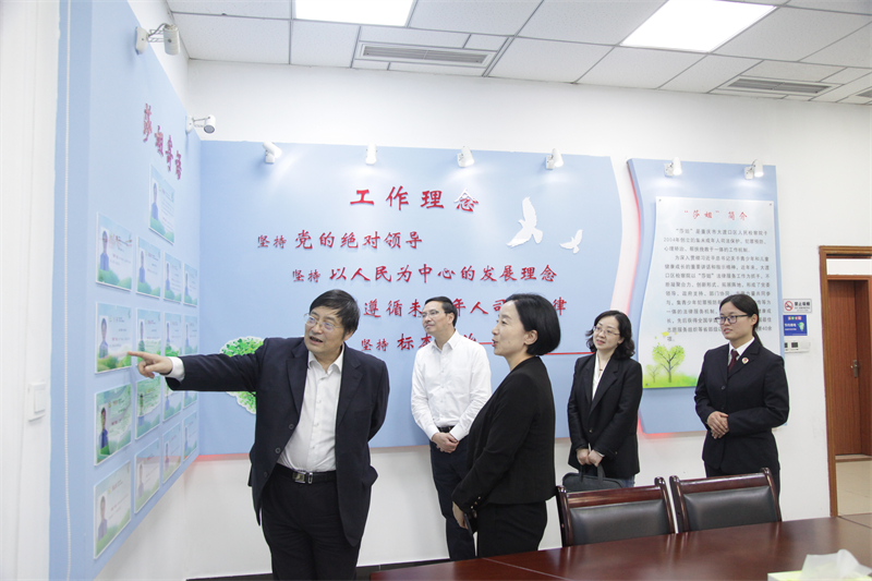 日下午,广东省佛山188体育 一行到我院参观“莎姐”工作,188体育 第五分院党组成员、副检察长陈卫民随行陪同,我院党组书记、检察长许创业、党组成员、副检察长李轶参与接待。