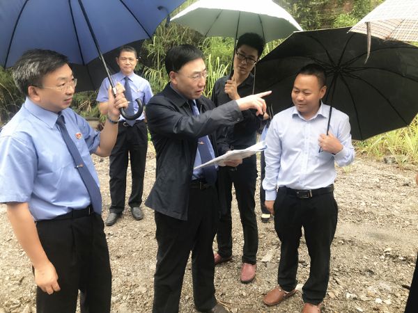 李检一行先后来到两起公益诉讼案件涉案现场——綦江区文龙街道和万盛经开区丛林镇,重点查看了涉案现场及周边环境,听取了丛林镇政府关于涉案地区的修复计划及整改进度,了解綦江区院当前公益诉讼工作开展情况、存在困难及下一步工作打算。