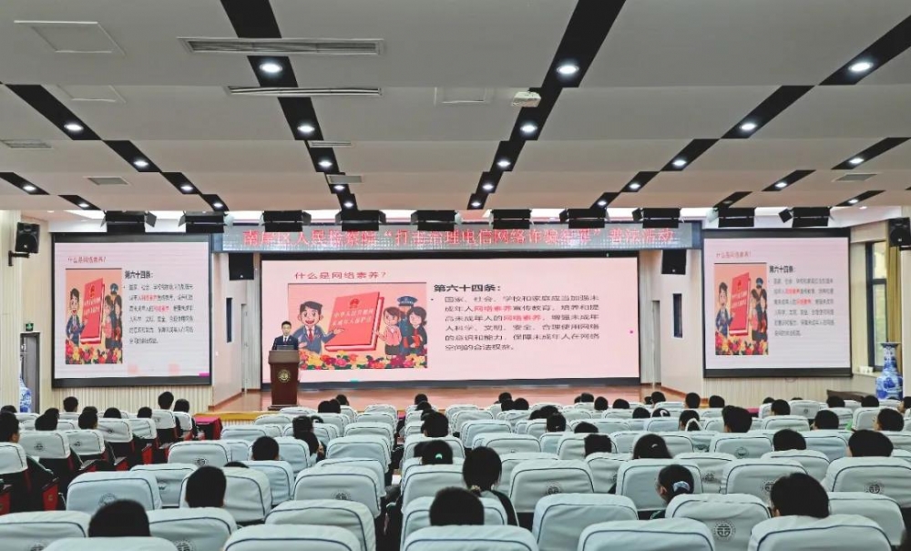 “网络诈骗的方式五花八门,之前一款比较火的养成类游戏《迷你世界》就是针对中小学生量身定做的诈骗手法,这类游戏的诈骗手段包含免费的诱惑、同伴的关怀、教唆的谎言等六个环节,每个环节都是紧密相连,环环相扣的。” 紧接着,杨豪又从保护个人信息安全、远离网络不良信息、预防网络诈骗三方面进行授课。除了讲解该院办理的真实案例外,杨豪还给同学们介绍了时下的新型诈骗手法,并现场剖析犯罪分子的作案动机和作案手法,帮助同学们提高思想“警戒线”,避免掉入陷阱成为嫌疑人的“狩猎”对象。