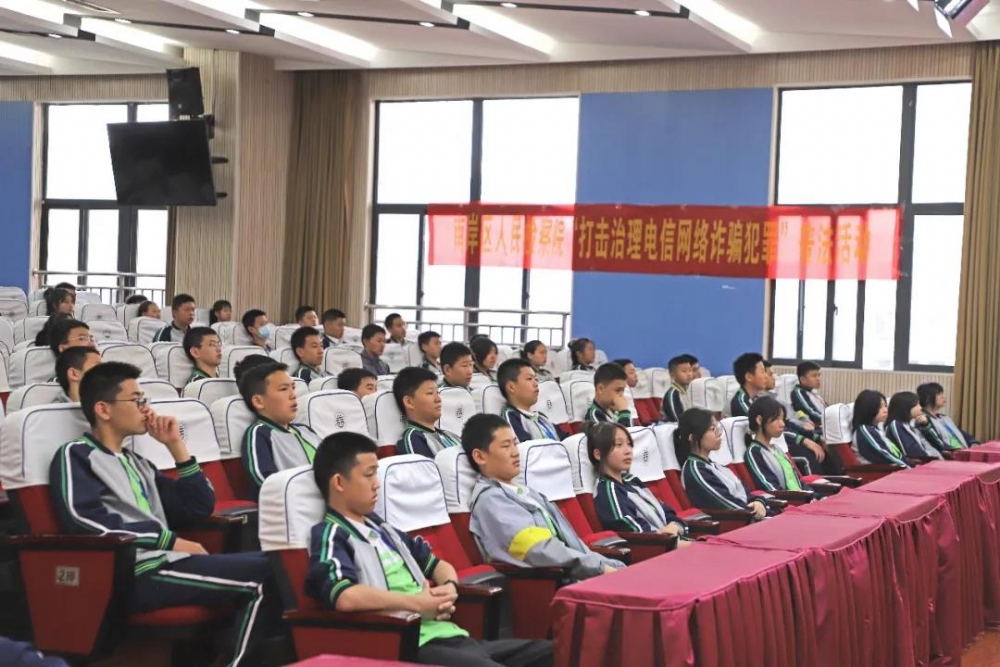 “同学们,也许你们觉得网络诈骗离自己很远,但它其实就在我们身边,接下来这个故事里的受害人王梅就是一名在校学生……所以,提高自己的网络防骗意识非常重要。”面对台下200多名初二学生,该校法治副校长、南岸区检察院检察六部检察官杨豪首先讲述了办理的一起真实案例——