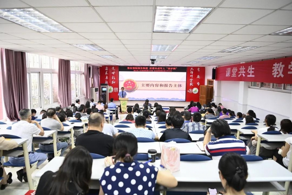 第五分院(以下简称:五分院)党组书记、检察长杨平为全校100余名教师上了一堂以“落实强制报告制度、织密未成年人‘保护网’”为主题的法治课,重点向大家讲述了什么是强制报告、具体有哪些情形应当报告和如何落实强制报告制度。