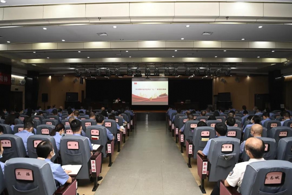 第五分院邀请市直机关工委副书记、市直机关纪检监察工委书记、市学习贯彻习近平总书记“七一”重要讲话精神“进机关”宣讲分队成员蒲舰同志,来院向全体干警宣讲习近平总书记“七一”重要讲话精神。全院在编干警职工及聘用制书记员参加讲座。
