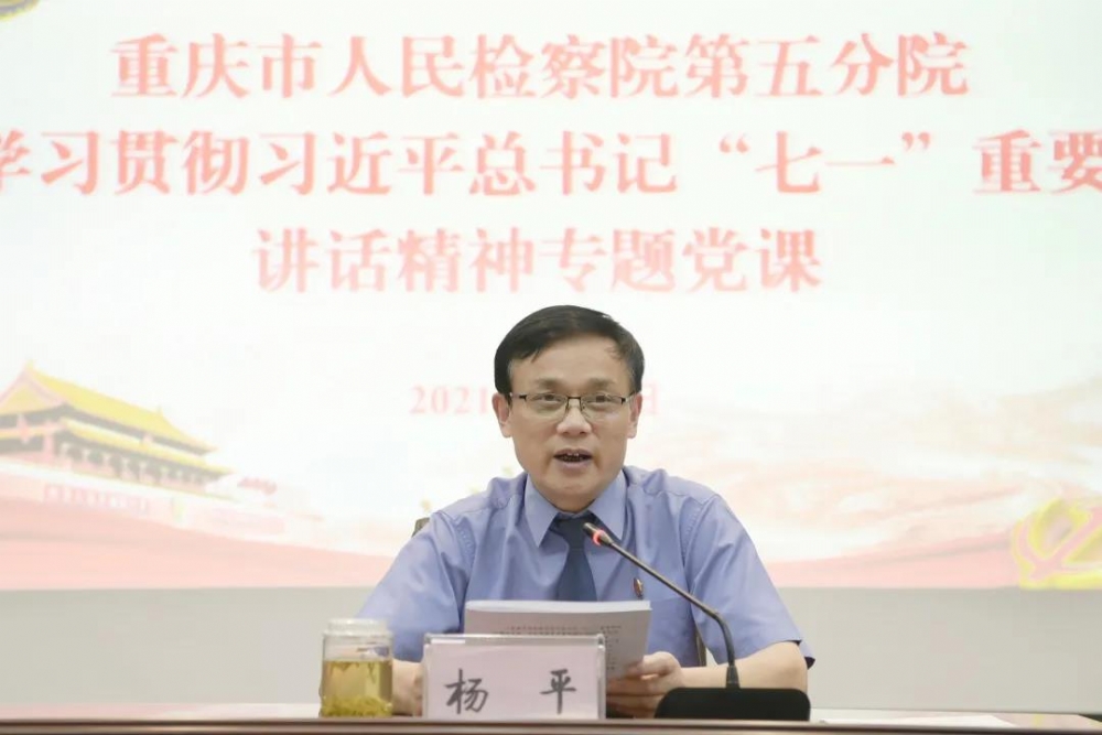 第五分院党组书记、检察长杨平为全院干警上学习贯彻习近平总书记“七一”重要讲话精神专题党课。