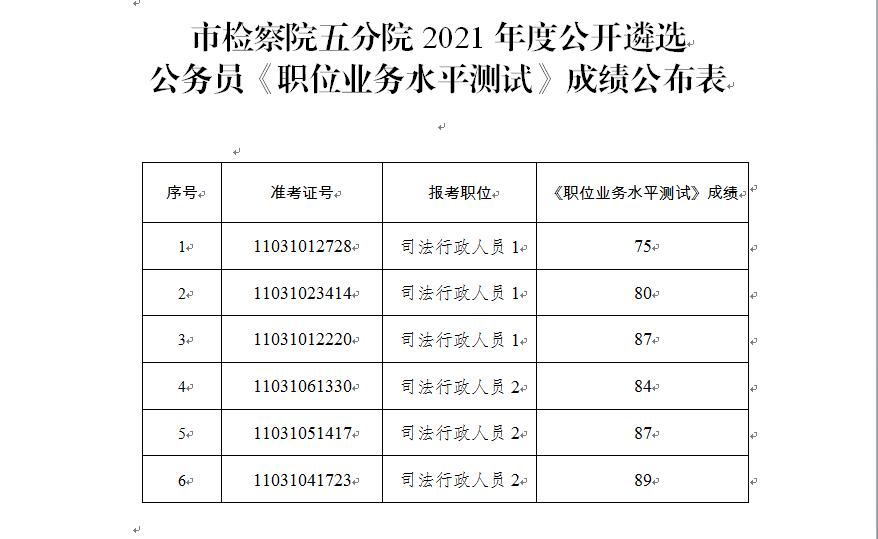 188体育 五分院2021年度公开遴选公务员《职位业务水平测试》成绩公布表