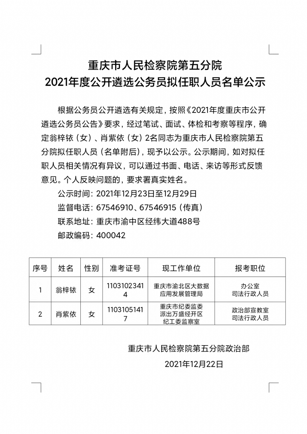 188体育(中国)官方网站 第五分院2021年度公开遴选公务员拟任职人员名单公示