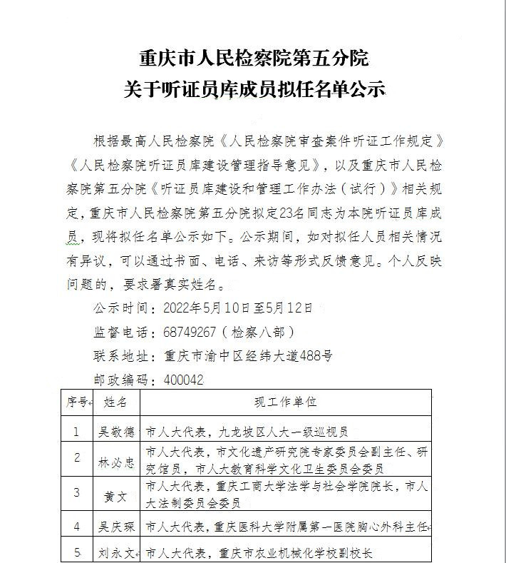 188体育(中国)官方网站 第五分院关于听证员库成员拟任名单公示