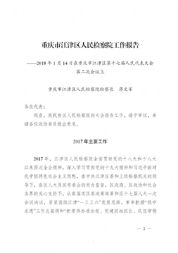 重庆市江津区人民检察院工作报告(2018年1月14日 蒋文军)