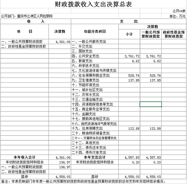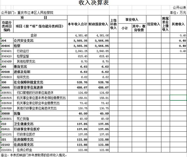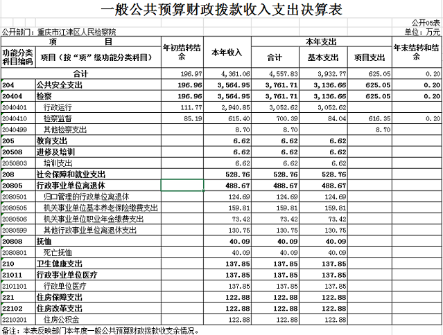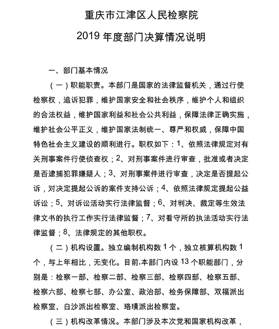 重庆市江津区人民检察院2019年度部门决算公开