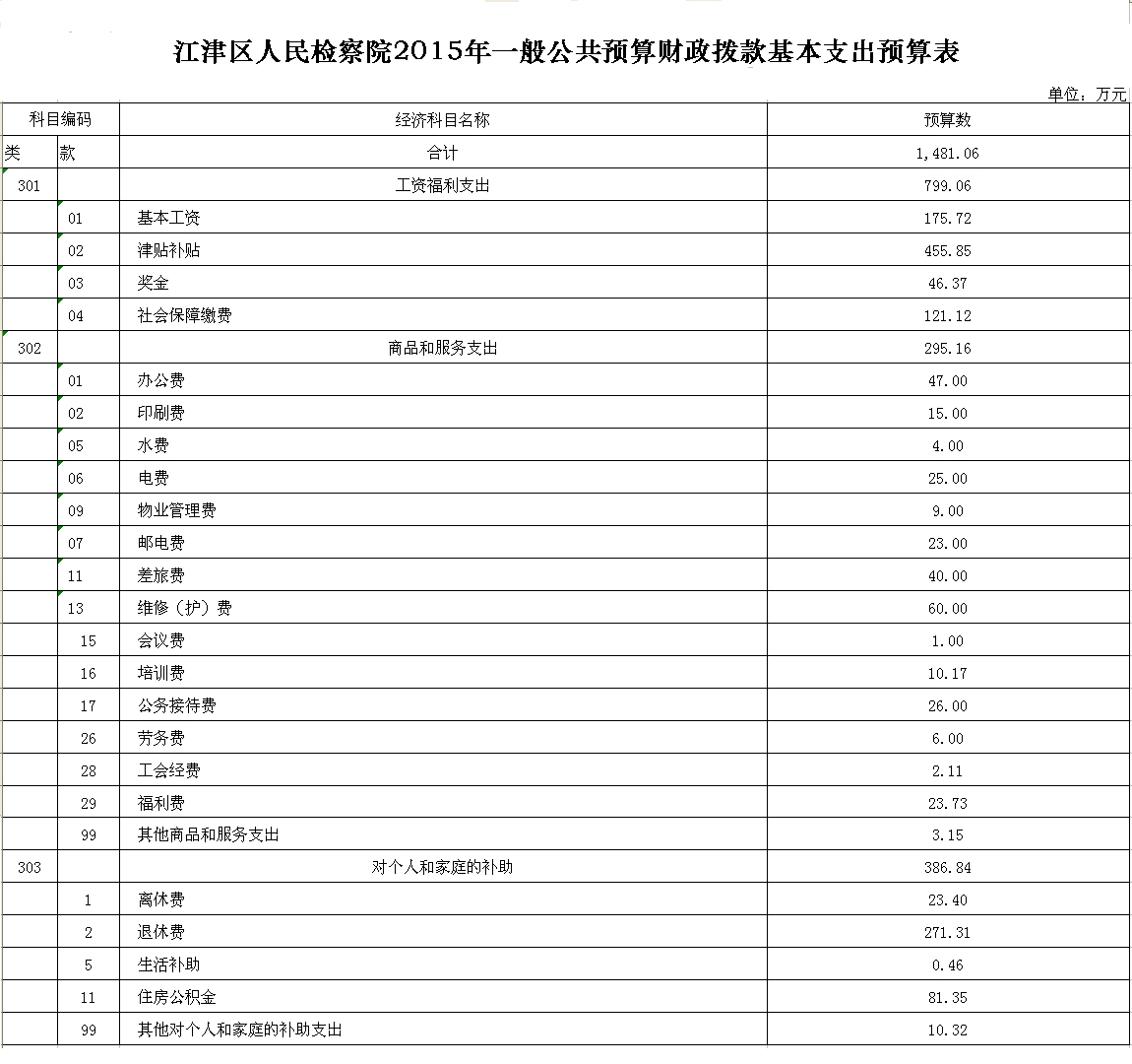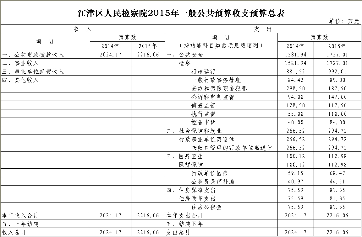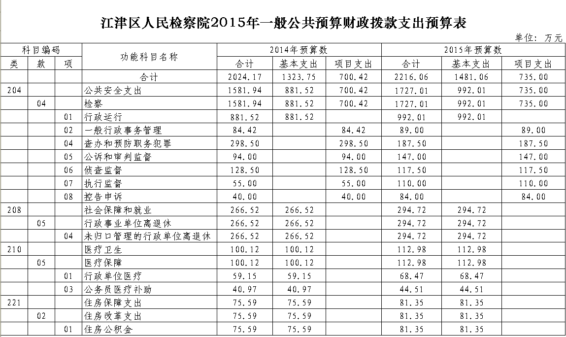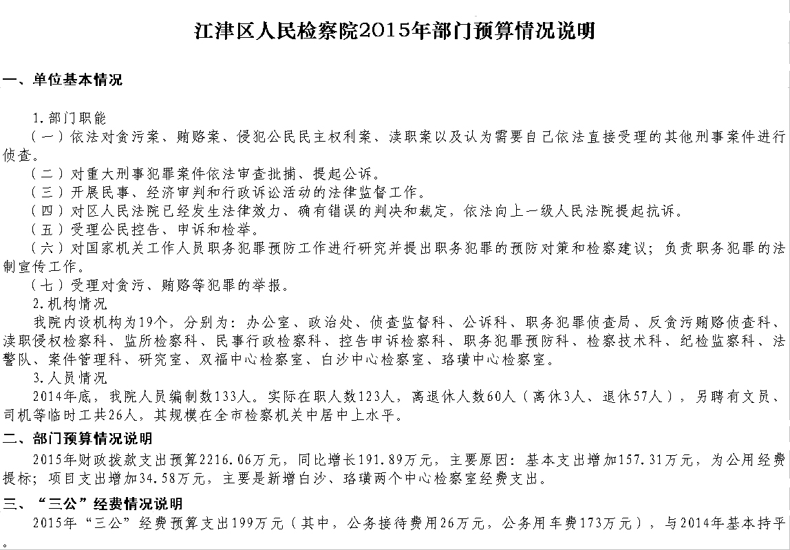 2015年江津区人民检察院预算