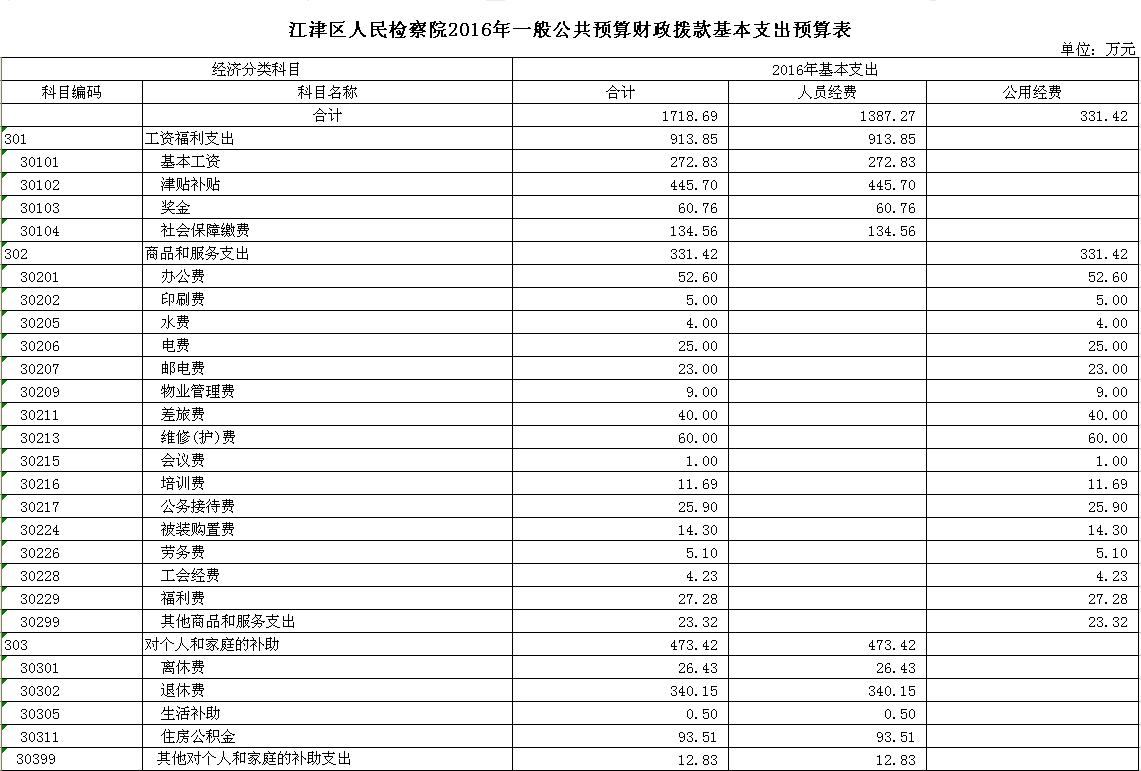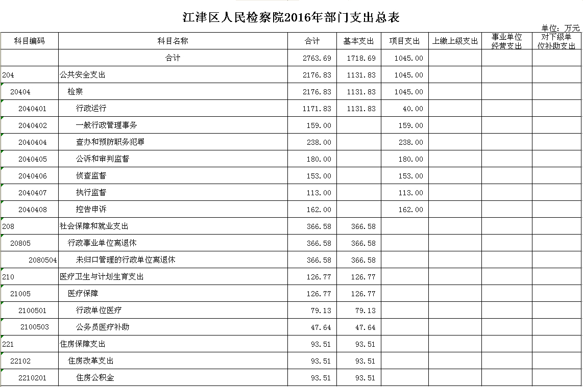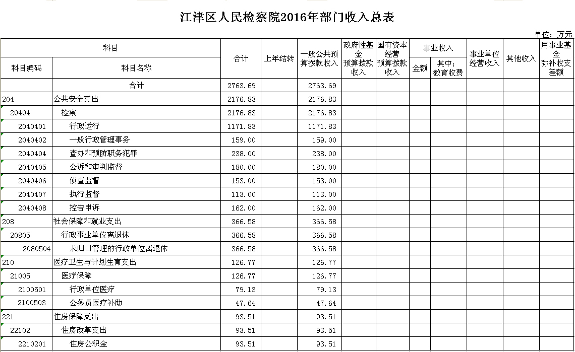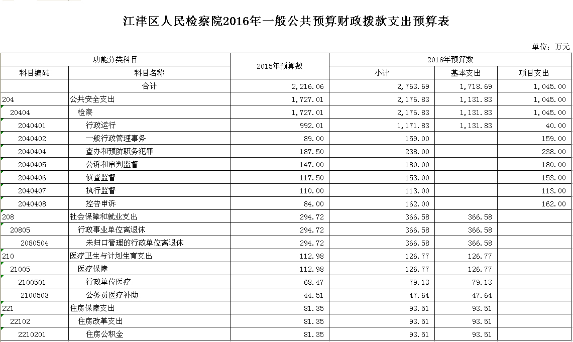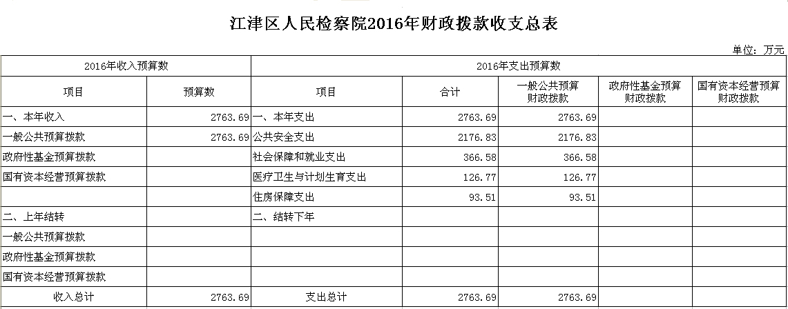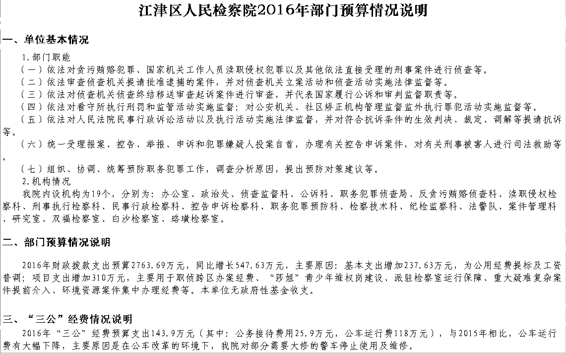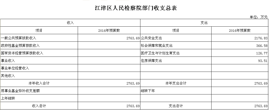 2016年江津区人民检察院预算