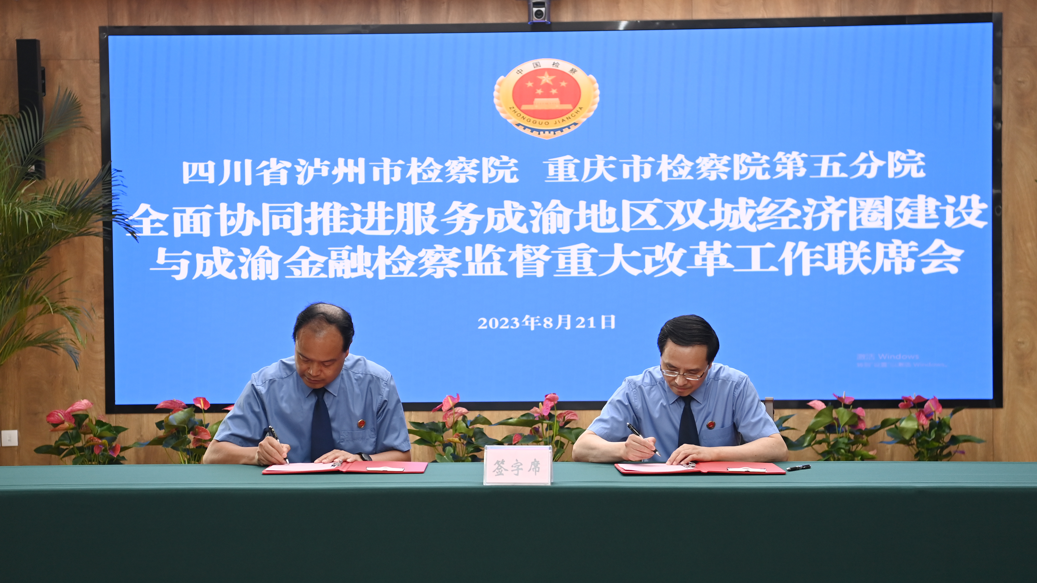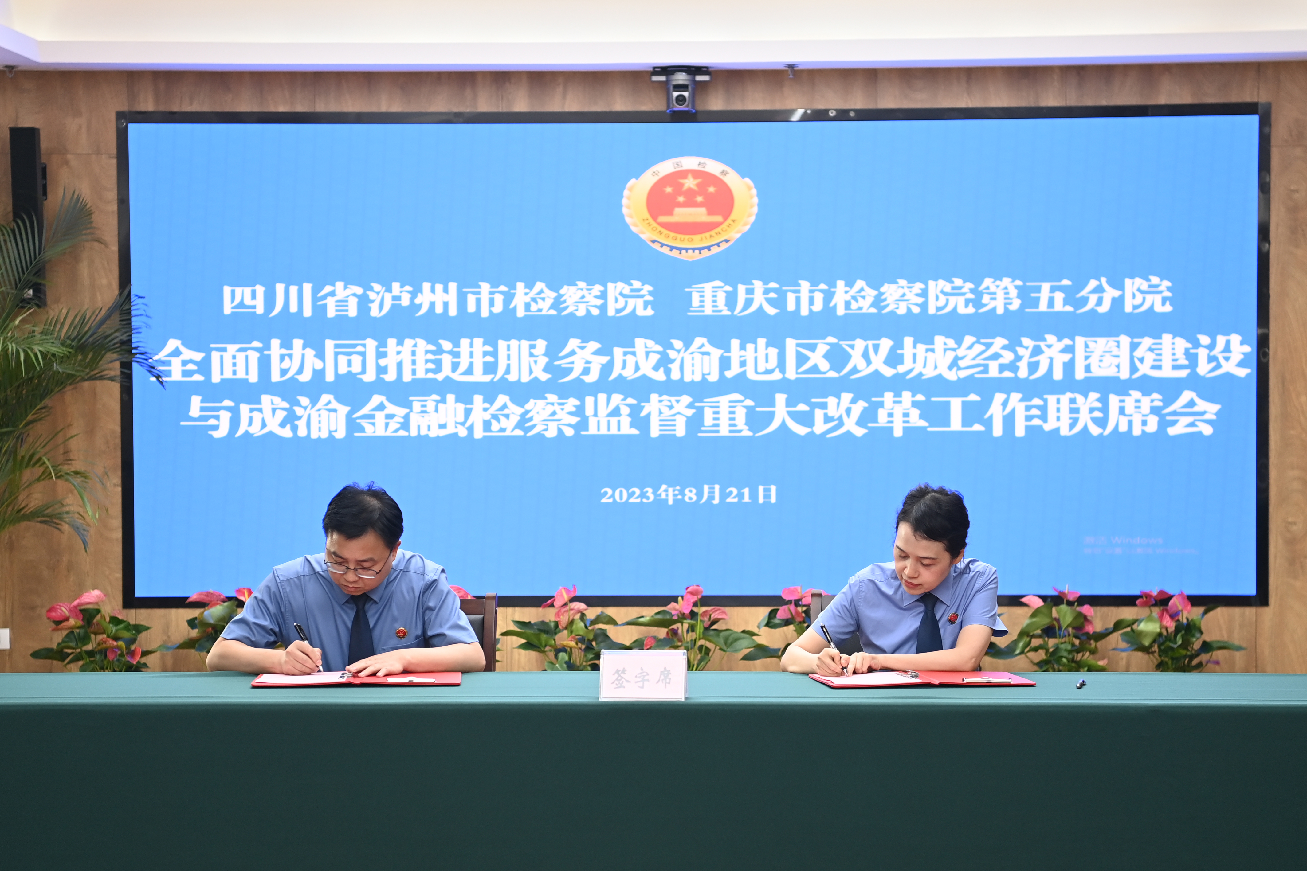 为认真贯彻党中央关于建设成渝地区双城经济圈重大战略决策部署,切实落实好四川省检察院与188体育(中国)官方网站 签订的《关于加强检察协作服务保障成渝地区双城经济圈建设的意见》(以下简称《意见》)和《关于加强成渝金融法院法律监督工作相关问题的会议纪要》(以下简称《纪要》)要求,更好服务成渝地区双城经济圈建设、泸永江融合发展示范区建设,推进跨省域检察监督重大改革,2023年8月21日下午,188体育(中国)官方网站 第五分院(以下简称五分院)与四川省泸州188体育 召开全面协同推进服务成渝地区双城经济圈建设和成渝金融检察监督重大改革联席会议。