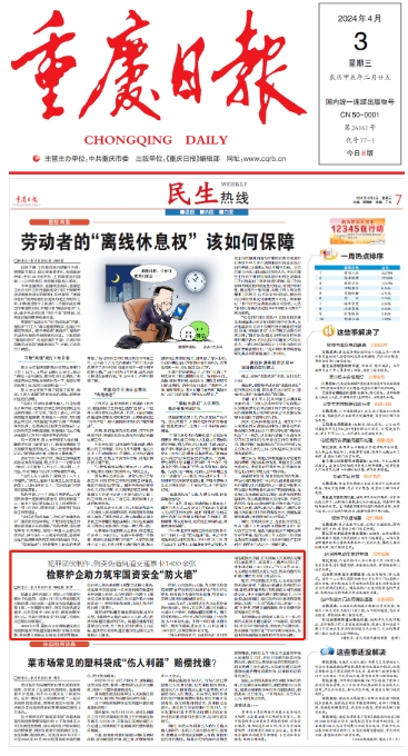 2024年4月3日,《重庆日报》第7版“民生热线”专栏刊登《犯罪团伙制作、倒卖伪造轨道交通票卡1400余张——检察护企助力筑牢国资安全“防火墙”》一文,内容如下: