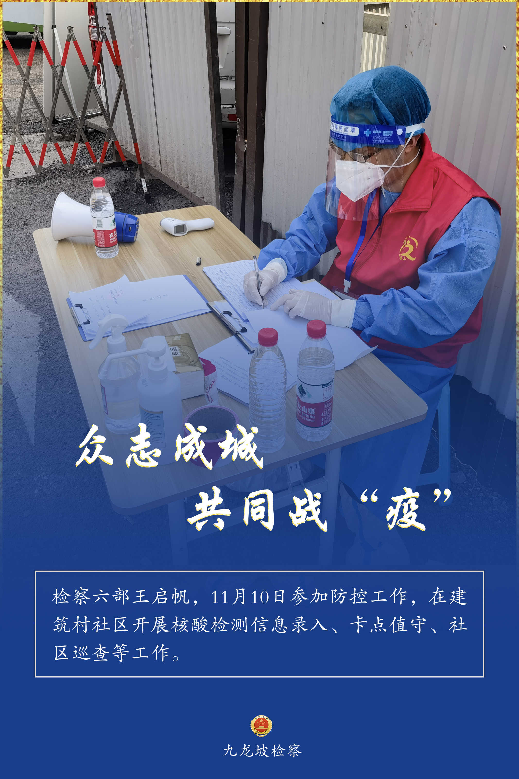连日来,九龙坡区疫情防控形势复杂严峻。九龙坡区检察院疫情防控志愿者们,他们始终坚守一线、不畏险阻,他们的身影活跃在疫情防控的各个环节,与街道、社区工作者们并肩奋战、共同战“疫”,为全区疫情防控工作增添一抹“检察蓝”,用实际行动诠释着检察人的使命担当。